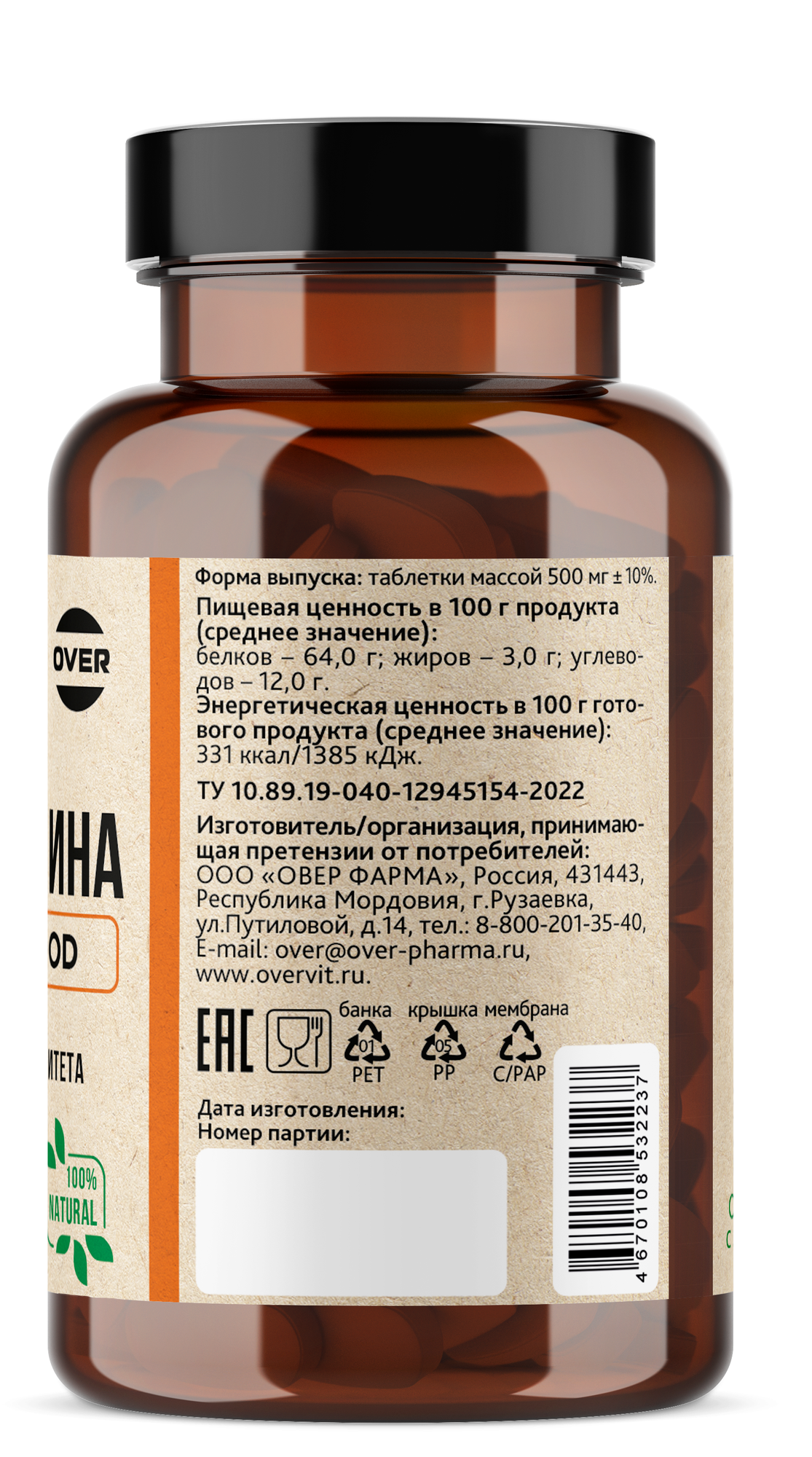 | Состав | спирулина прессованная |