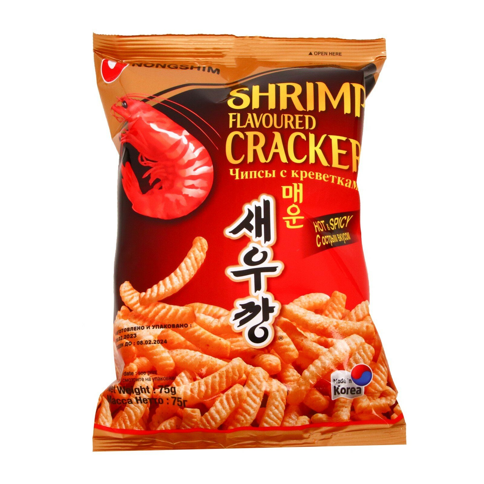 Чипсы креветочные острые Nongshim, 75 г x 4 шт