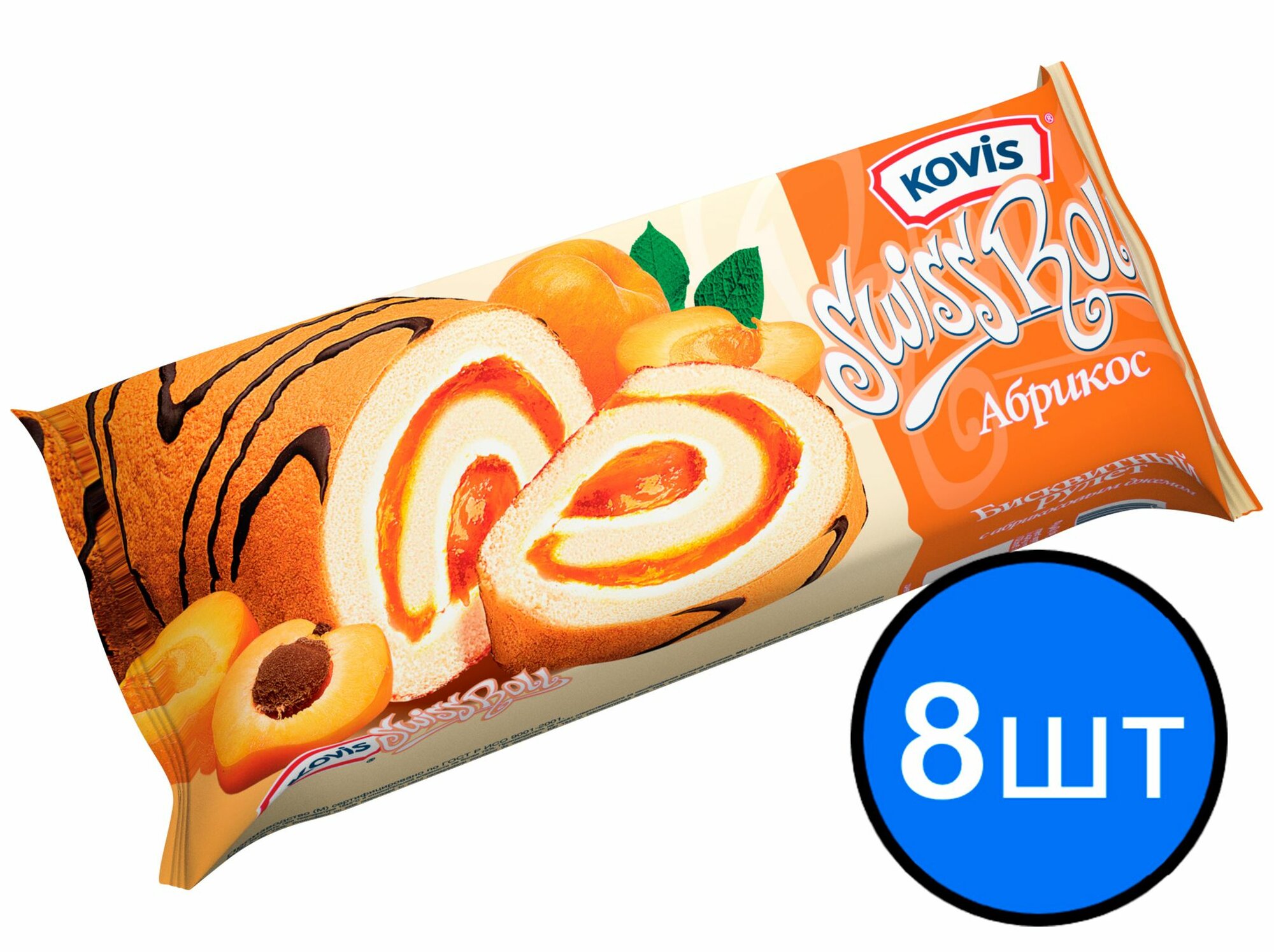 Рулет бисквитный с абрикосовой начинкой Kovis (Ковис), 175г х 8шт интересное: