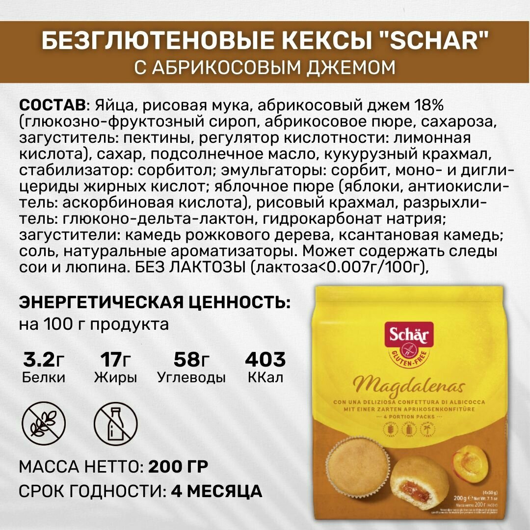 Кексы без глютена Dr. Schar Magdalenas с абрикосовым джемом 2 пачки по 200г