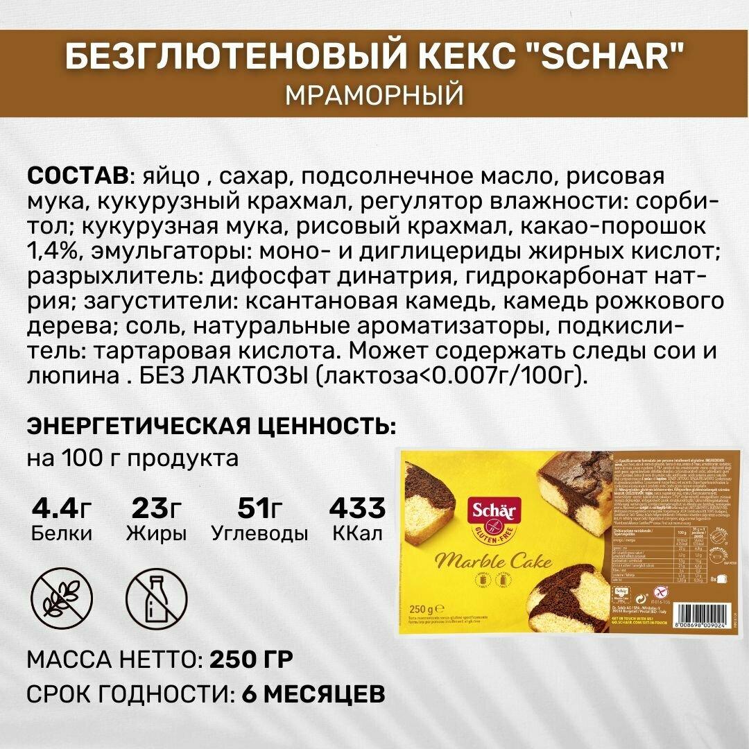 Кексы без глютена Dr. Schar Marmorkuchen Мраморный / Magdalenas с Джемом интересное: