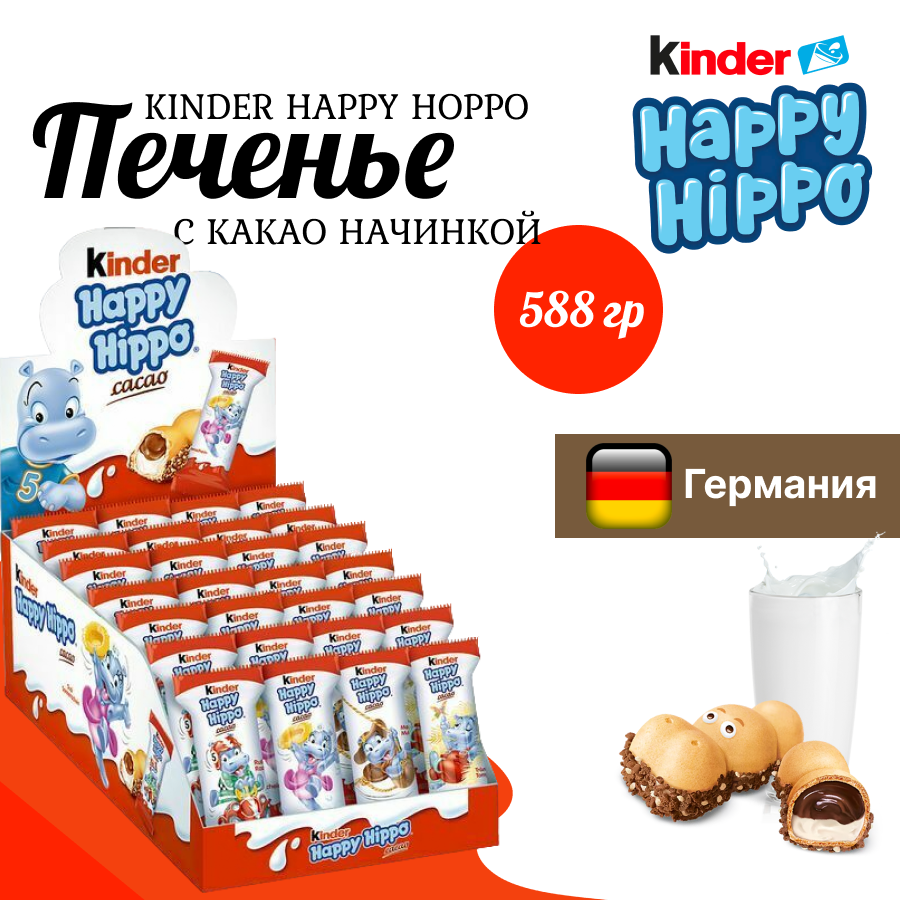Купить Шоколадно-молочное печенье Kinder Happy Hippo Cacao со вкусом какао 588г (28штук)