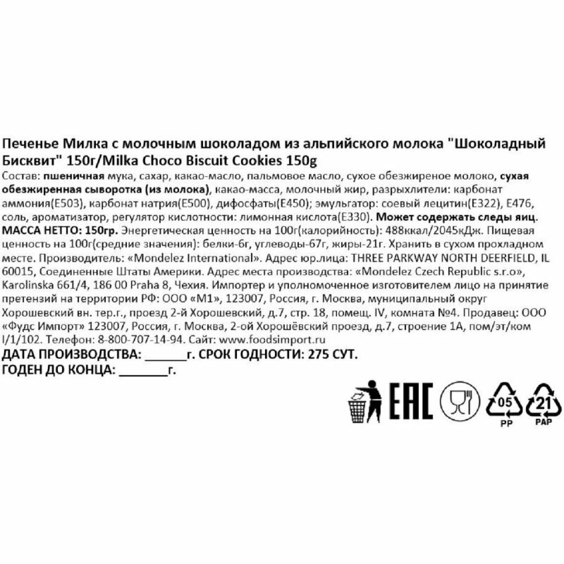 Печенье Milka choco biscuit с шоколадом, 150 г