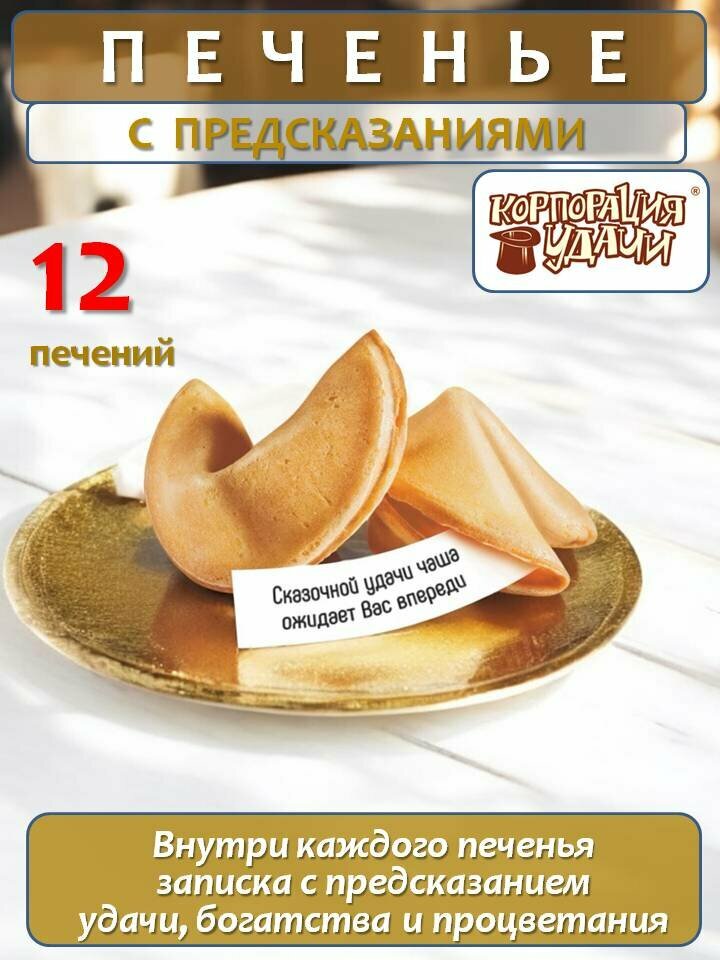 Печенье с предсказаниями счастья, 12 штук. Корпорация удачи. Подарок