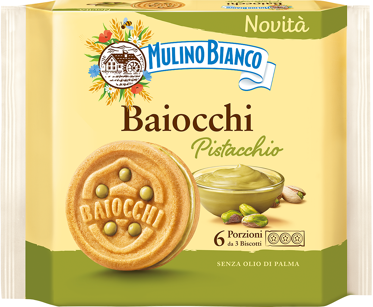Печенье Mulino Bianco Baiocchi с фисташковой начинкой, 168г Италия интересное: