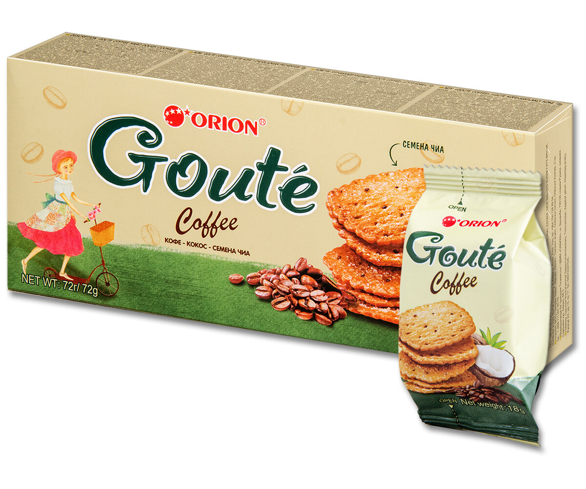 Печенье затяжное ORION Goute Coffee, 4 шт., 72 г, 16 уп. интересное: