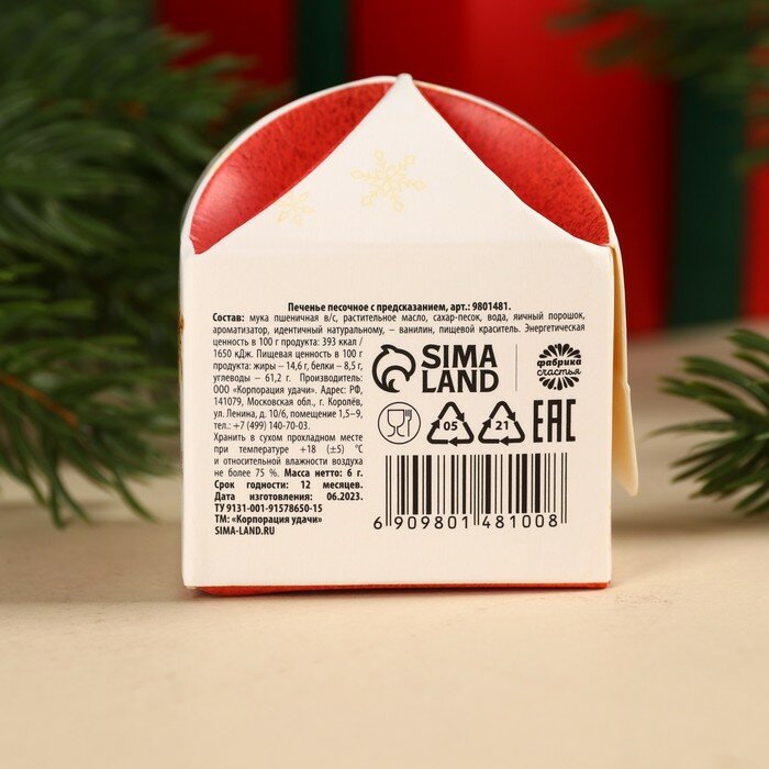 Фабрика счастья Печенье с предсказанием «Дед Мороз тебя любит», 1 шт x 6 г.