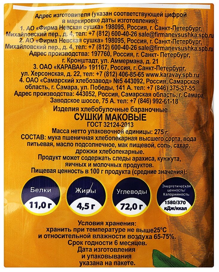 Сушки маковые Невская сушка 275 гр интересное: