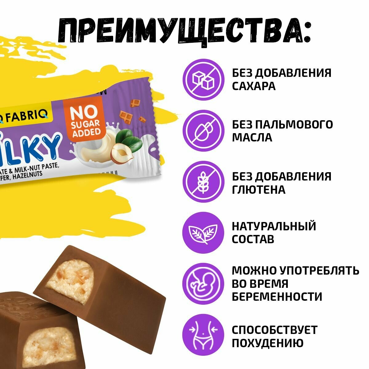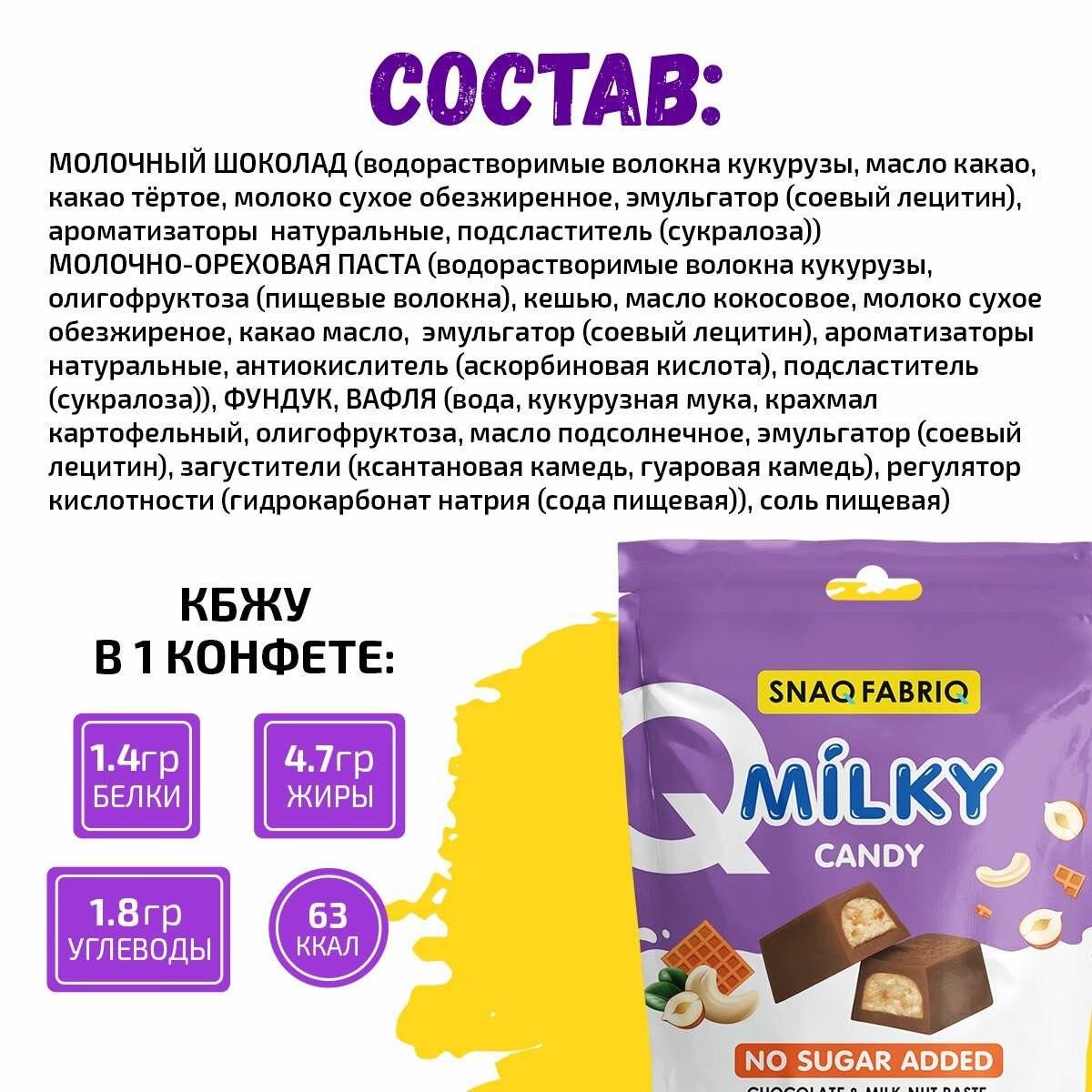 SNAQ FABRIQ Шоколадные конфеты без сахара MILKY CANDY с молочно-ореховой пастой, вафлей и фундуком, 130г (10шт х 13г) интересное:
