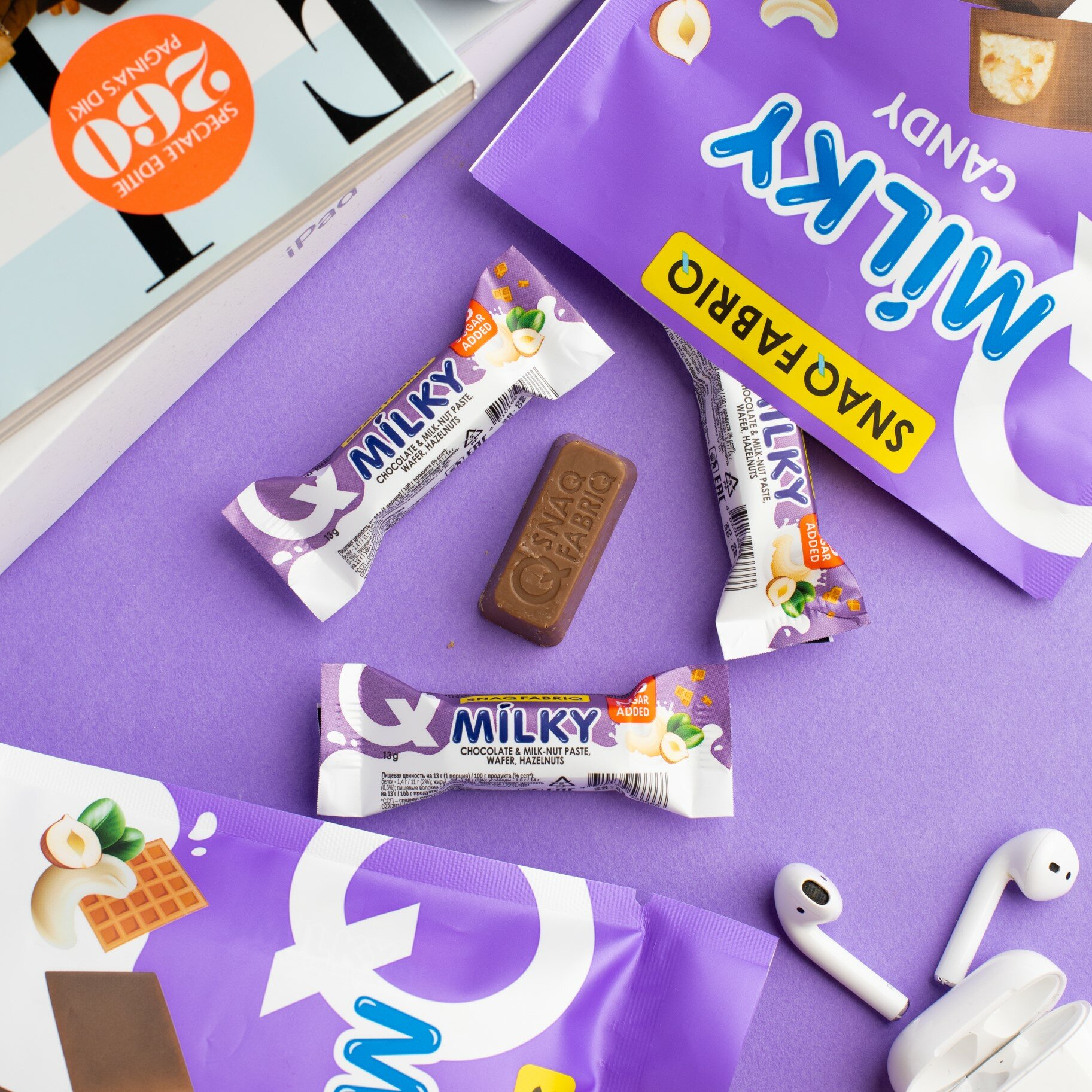 Ниже Вы можете прочитать отзывы на SNAQ FABRIQ Шоколадные конфеты без сахара MILKY CANDY с молочно-ореховой пастой, вафлей и фундуком, 130г (10шт х 13г), ознакомится с подробными характеристиками, посмотреть интересные обзоры и фотографии на SNAQ FABRIQ Шоколадные конфеты без сахара MILKY CANDY с молочно-ореховой пастой, вафлей и фундуком, 130г (10шт х 13г).