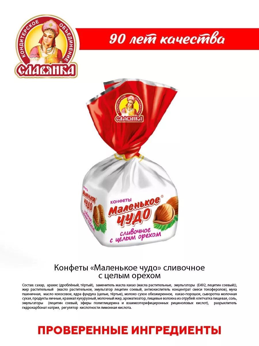Конфеты Славянка Маленькое чудо, сливочное с целым орехом, пакет, 1 кг интересное: