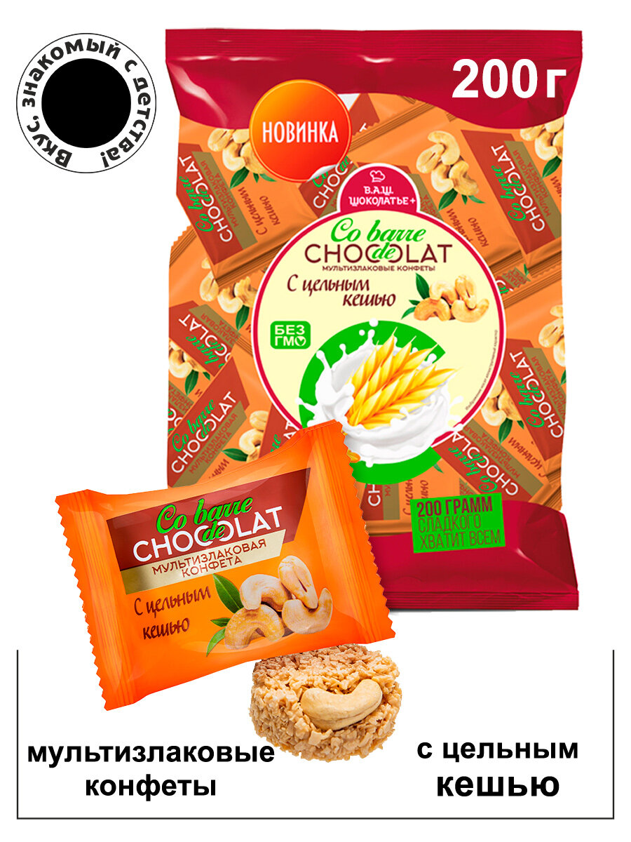 Купить Конфеты мультизлаковые с белой глазурью и цельным кешью 200г/Co barre de CHOCOLAT/ Вкус, знакомый с детства!