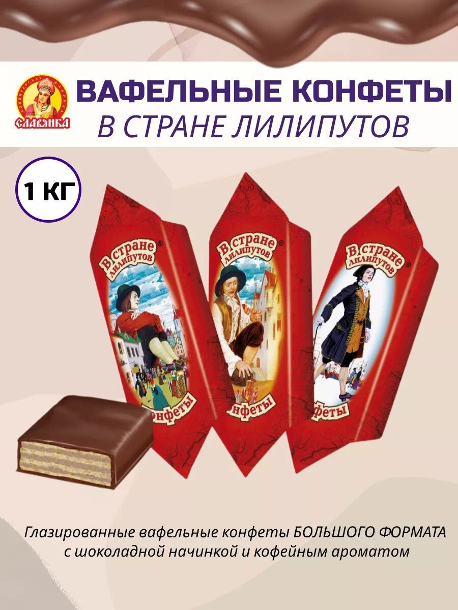 Купить Вафельные конфеты В стране лилипутов Славянка шоколадные крупные 1 кг