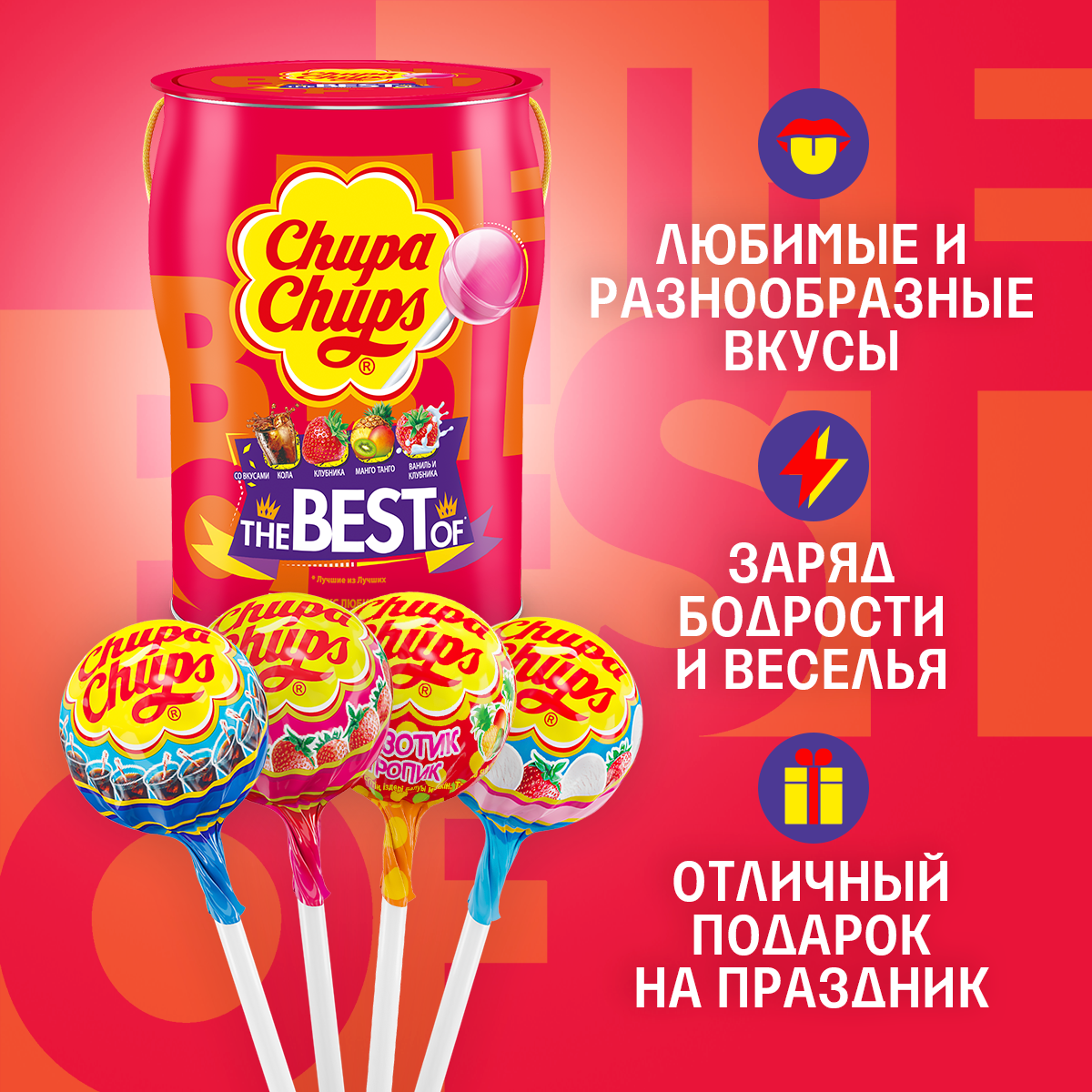 Карамель Chupa Chups The Best of, ассорти, 12 г, 150 шт.