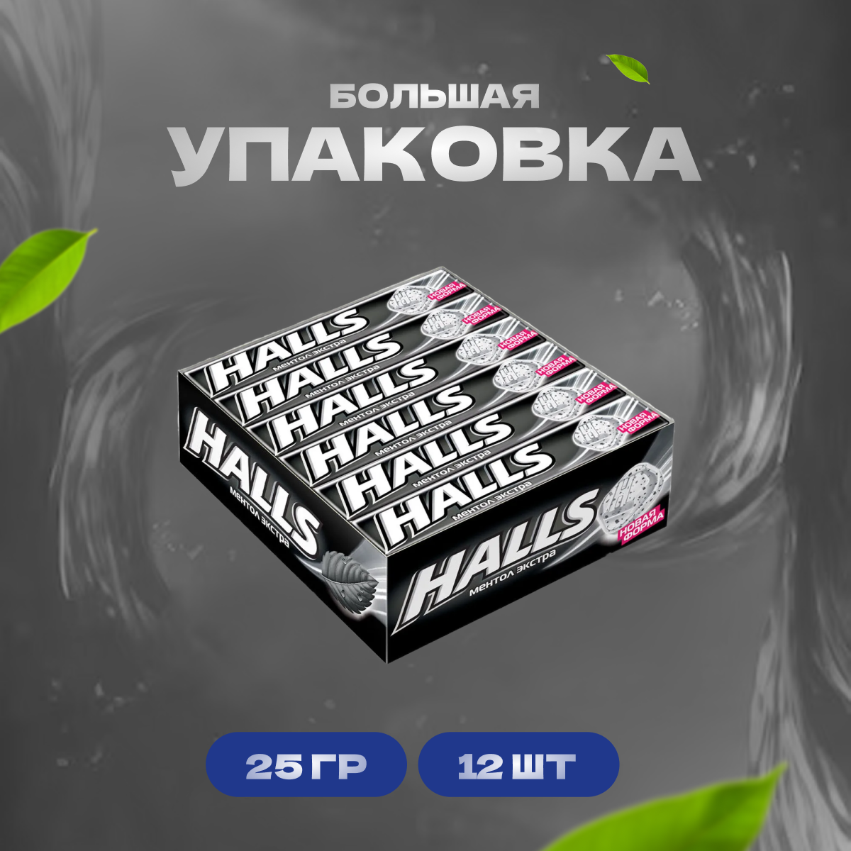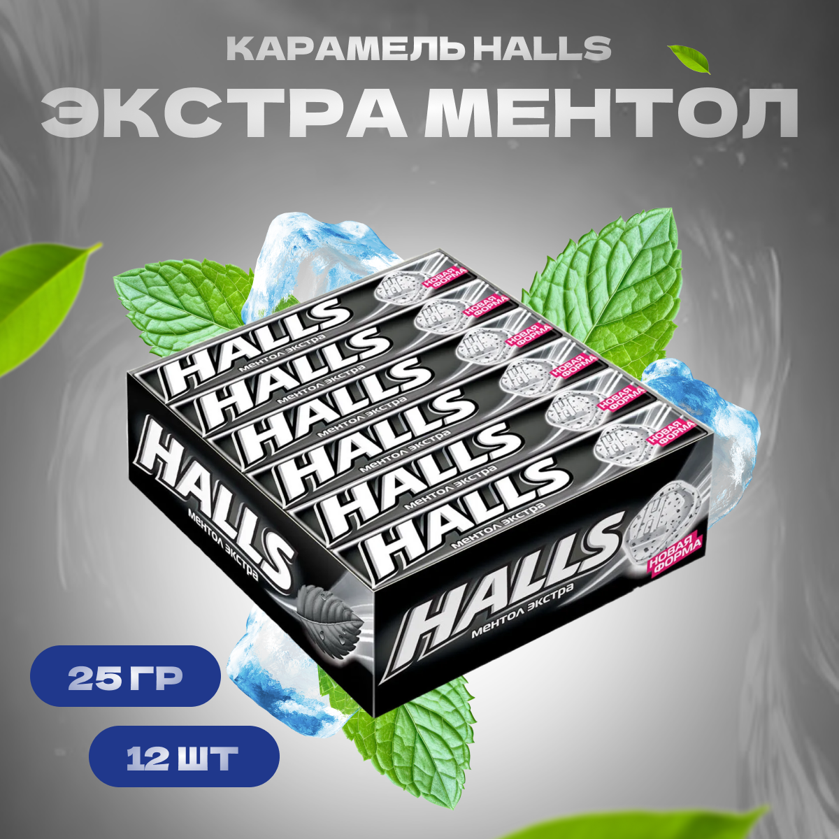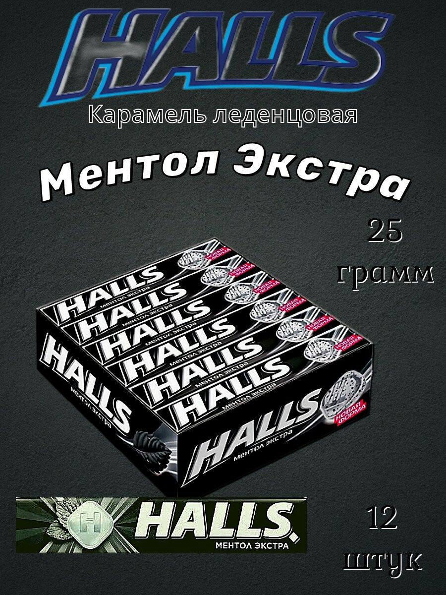 HALLS Карамель леденцовая, Ментол экстра, Шоубокс, 24,5г * 12 шт