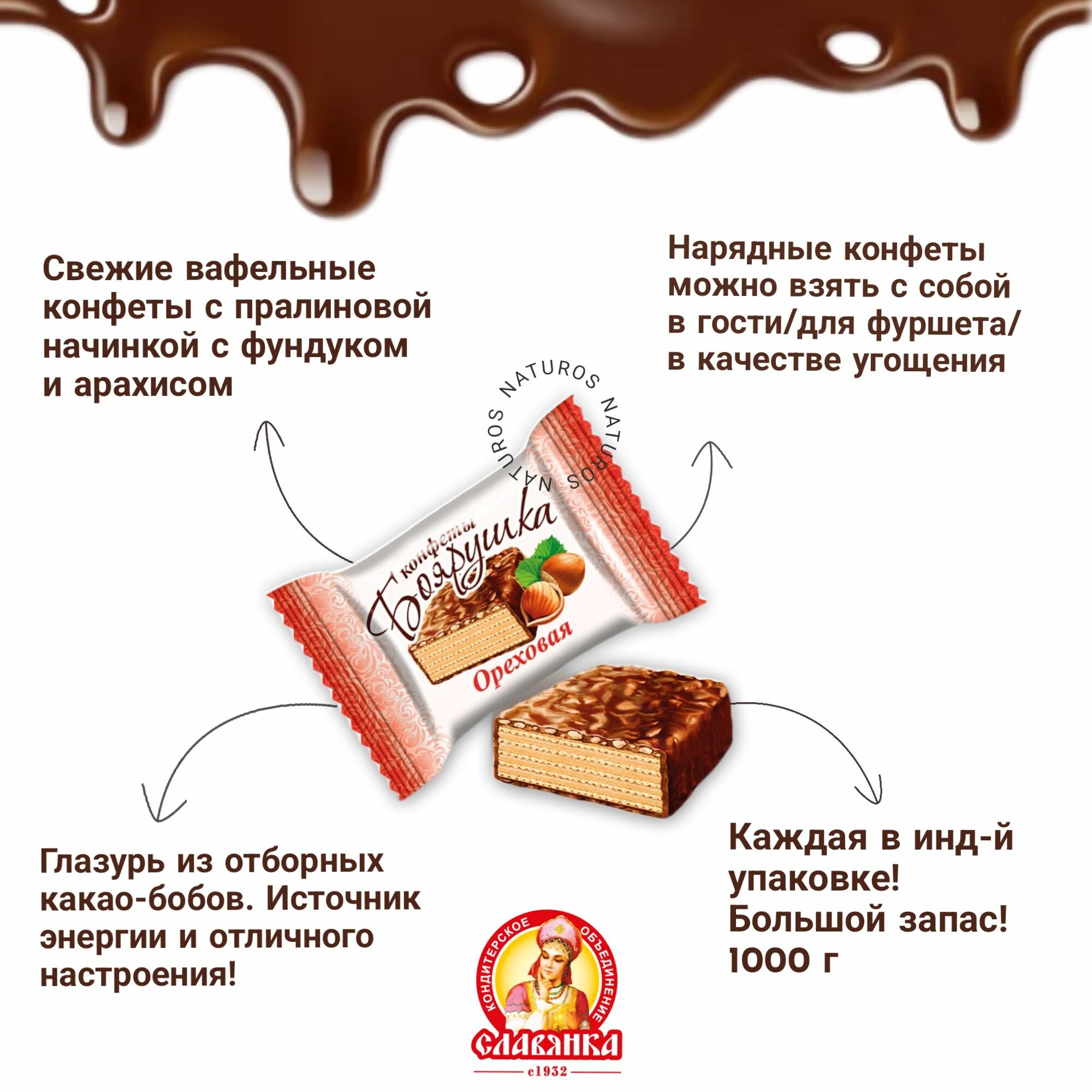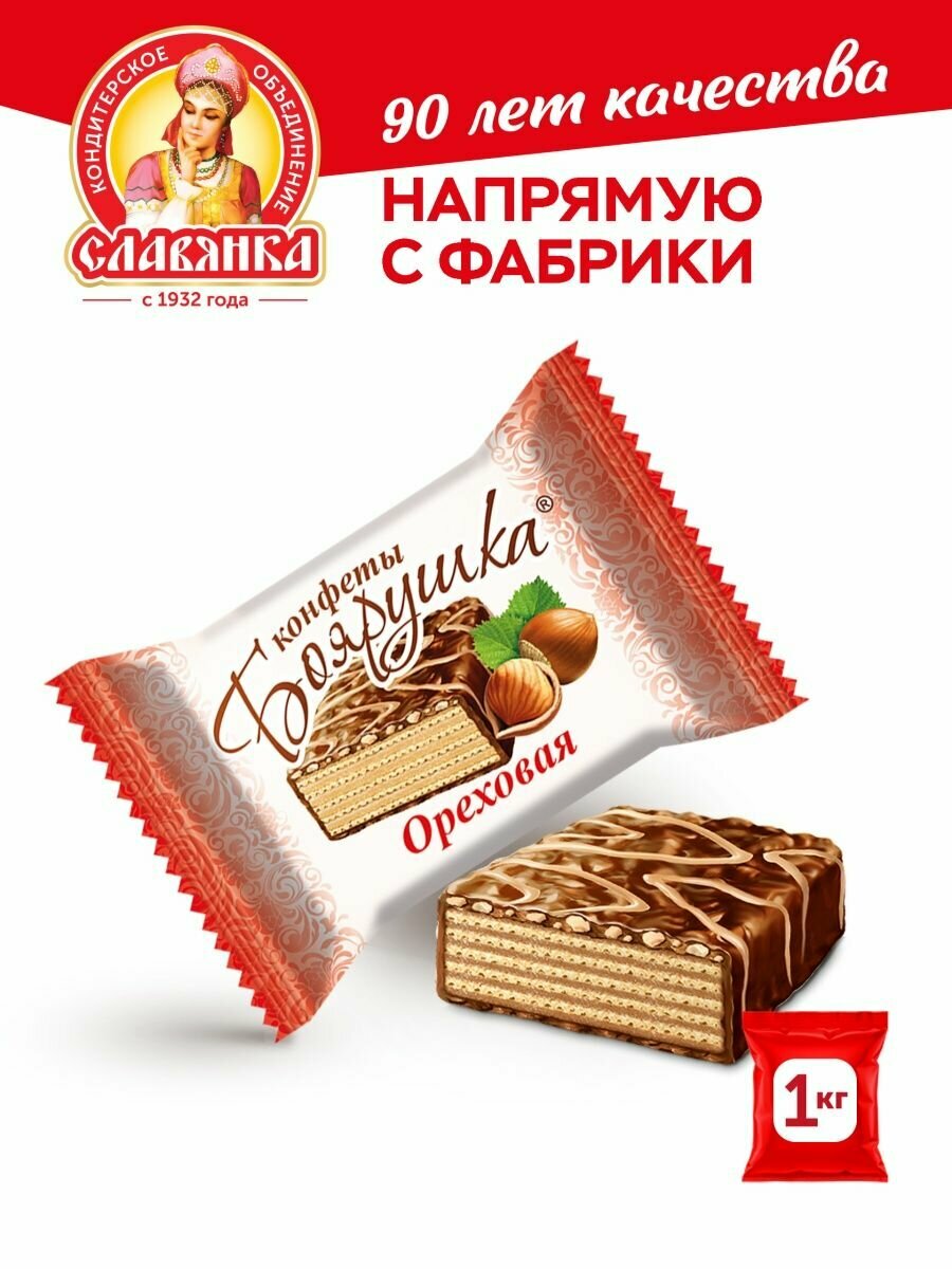 Шоколадные конфеты Ореховые Славянка вафельные с орехом 1 кг