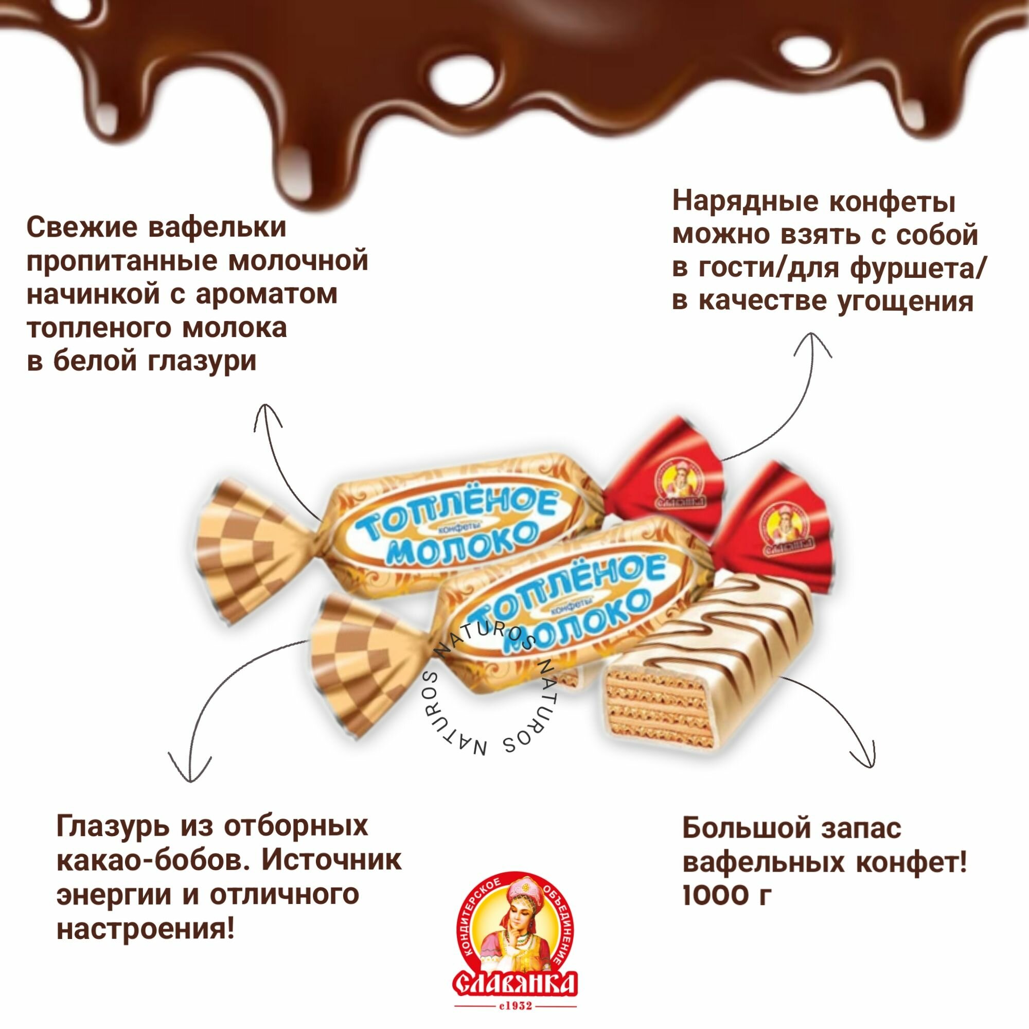 Конфеты шоколадные славянка "Топленое молоко" вафельные, с молочной начинкой, 1кг
