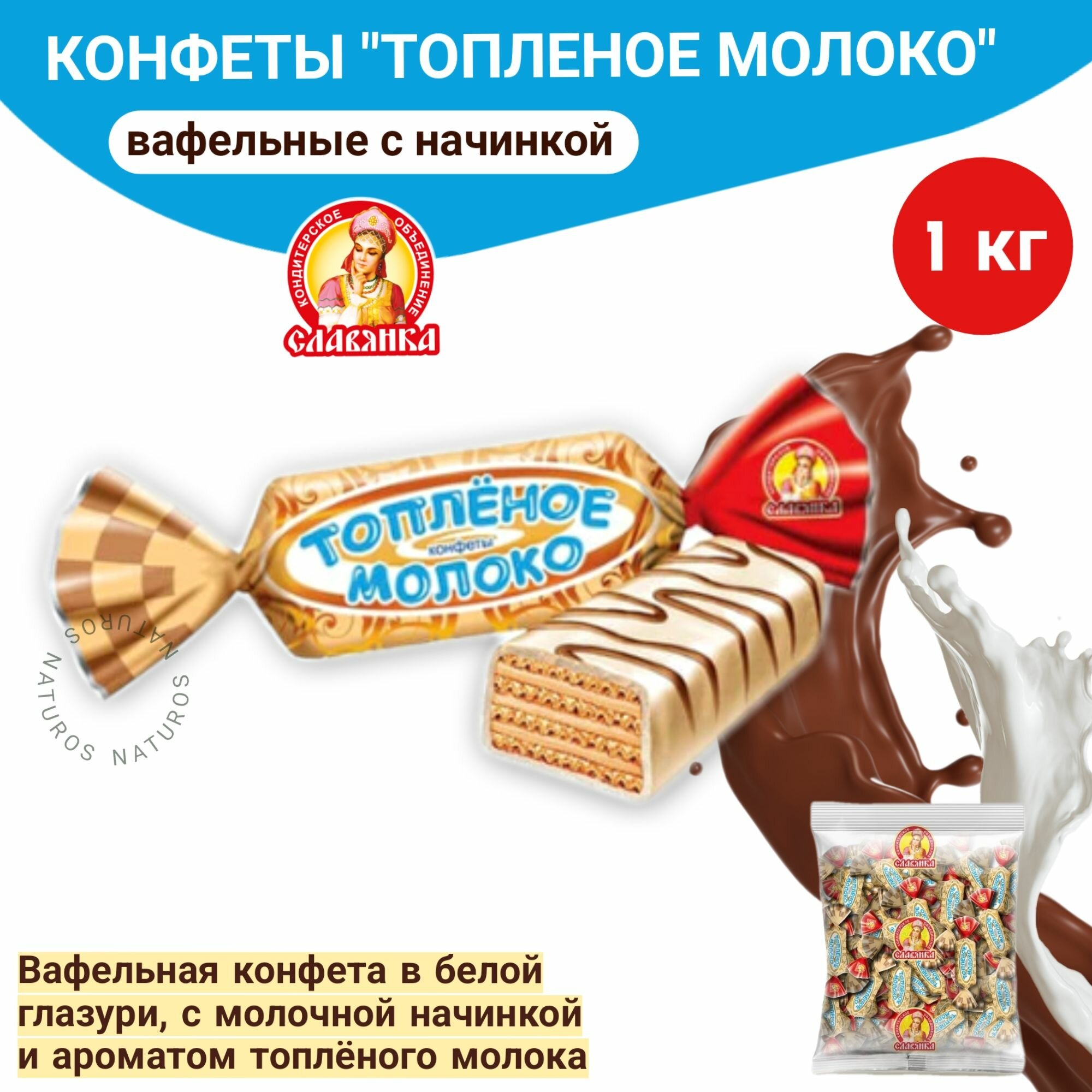 Купить Конфеты шоколадные славянка Топленое молоко вафельные с молочной начинкой 1кг