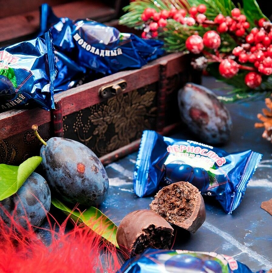 Подарок маме на на Новый Год, набор конфет подарочных Чернослив Шоколадный в коробке, 240 грамм
