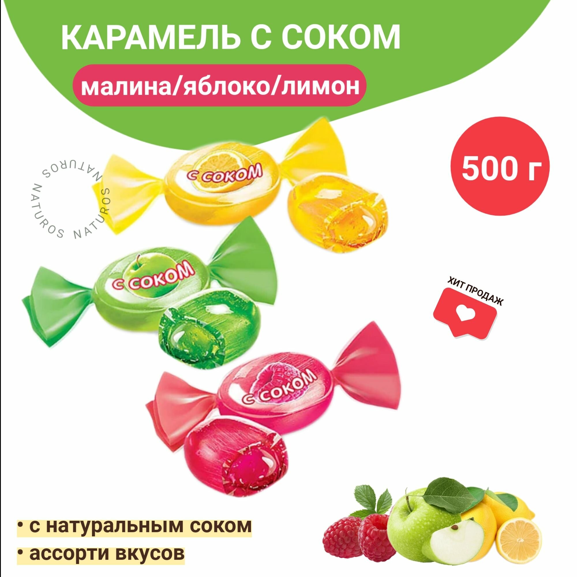 Карамель с соком малины, яблока и лимона 0,5 кг