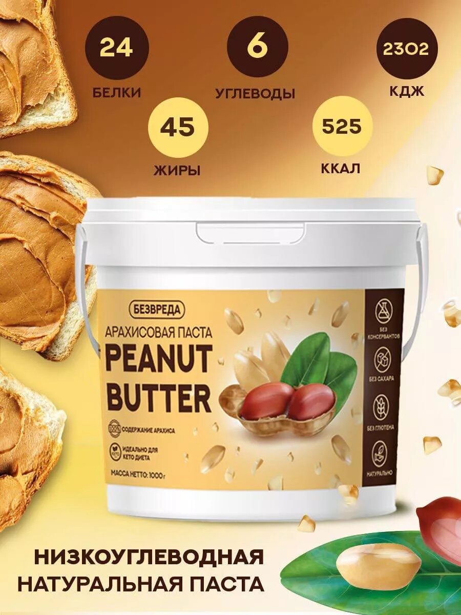 Арахисовая паста "безвреда" без сахара низкоуглеводная 1 кг интересное: