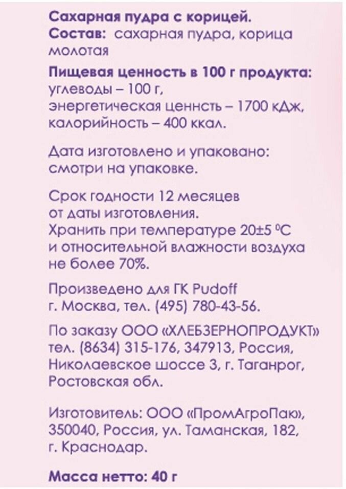 Сахарная пудра, "С. Пудовъ", 40 г