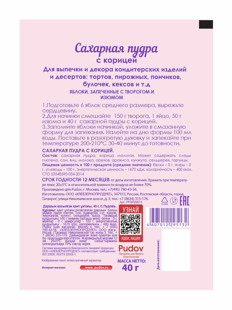 Сахарная пудра с корицей для выпечки и декора, С.Пудовъ,40 г интересное: