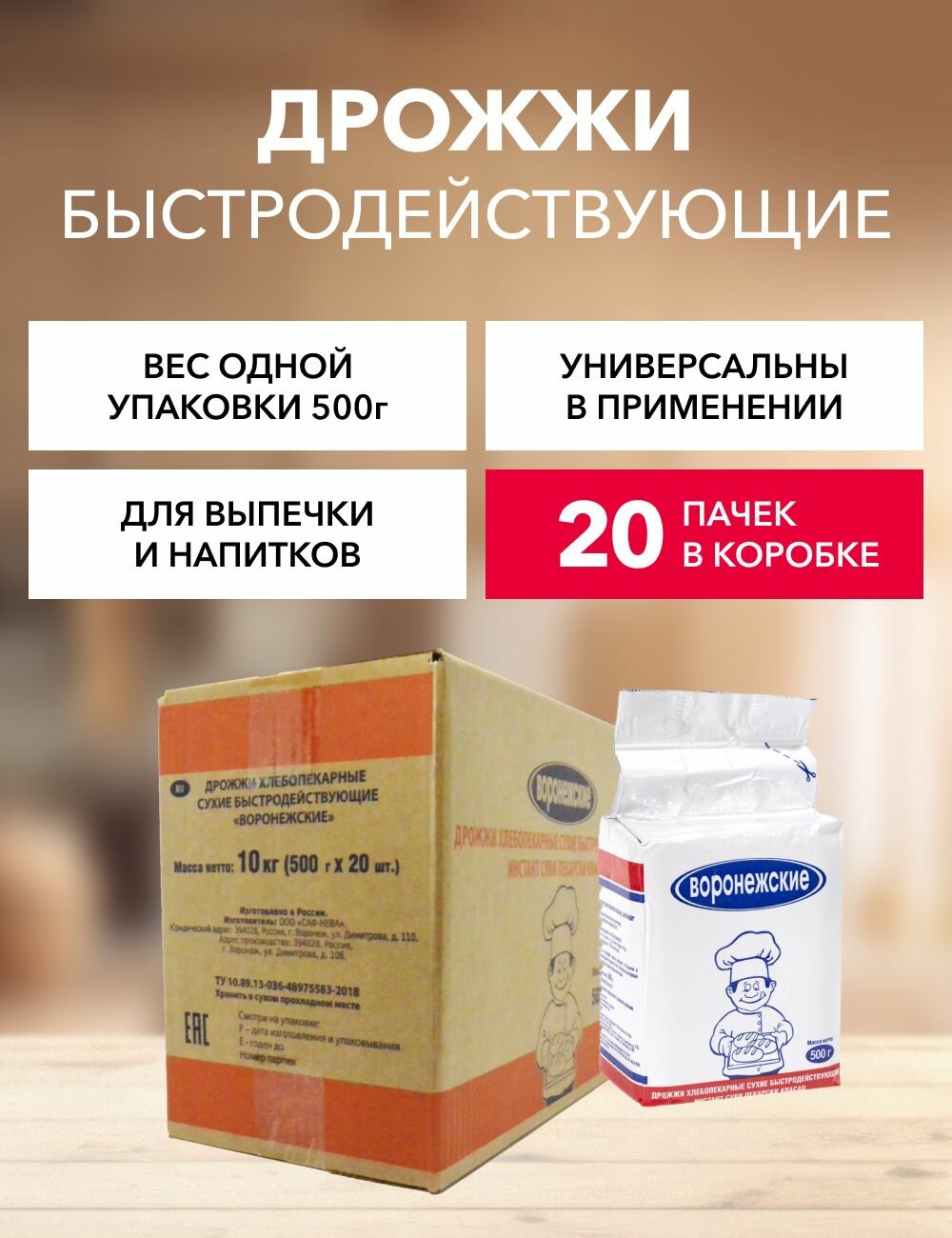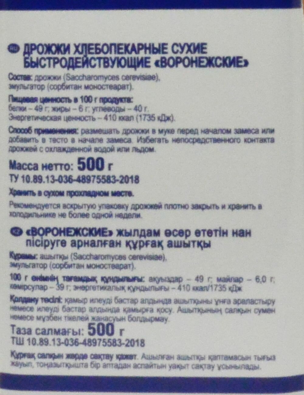 Дрожжи сухие быстродействующие Воронежские 500 г*20 шт интересное: