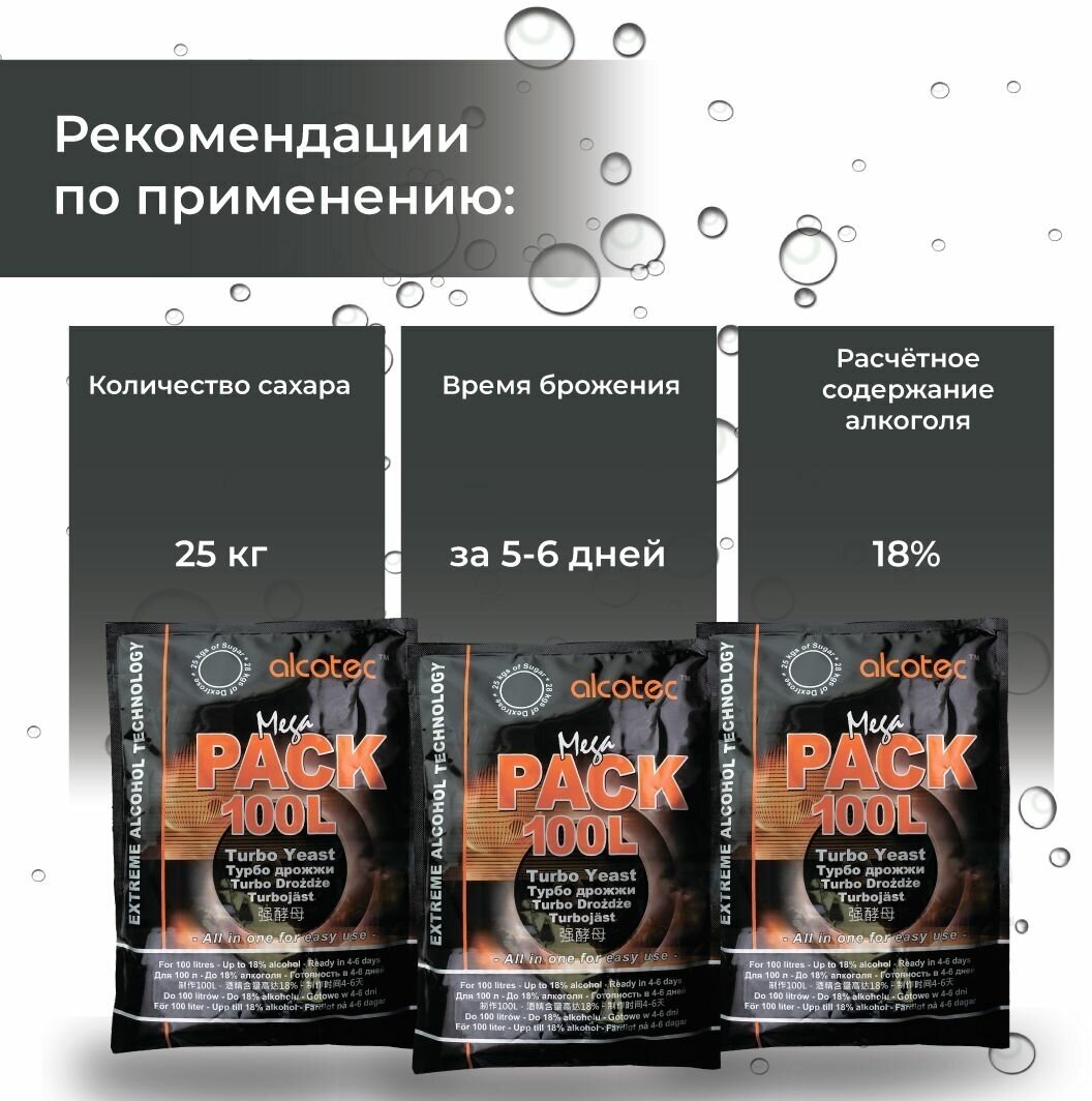 Спиртовые дрожжи Alcotec Mega Pack 100L Turbo, 360 г, 3 шт.