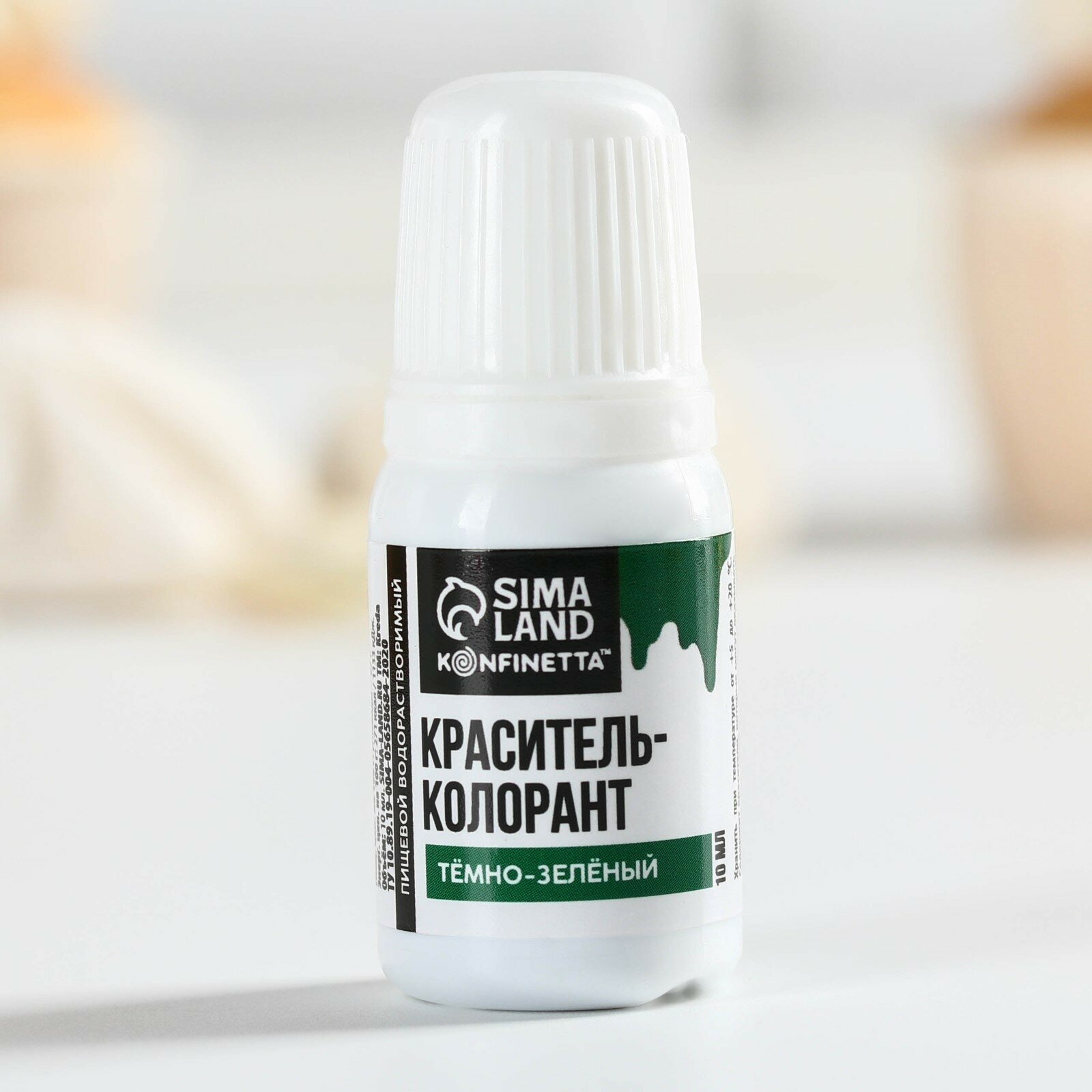 Краситель пищевой гелевый водорастворимый для десертов: тёмно-зеленый, 10 мл.