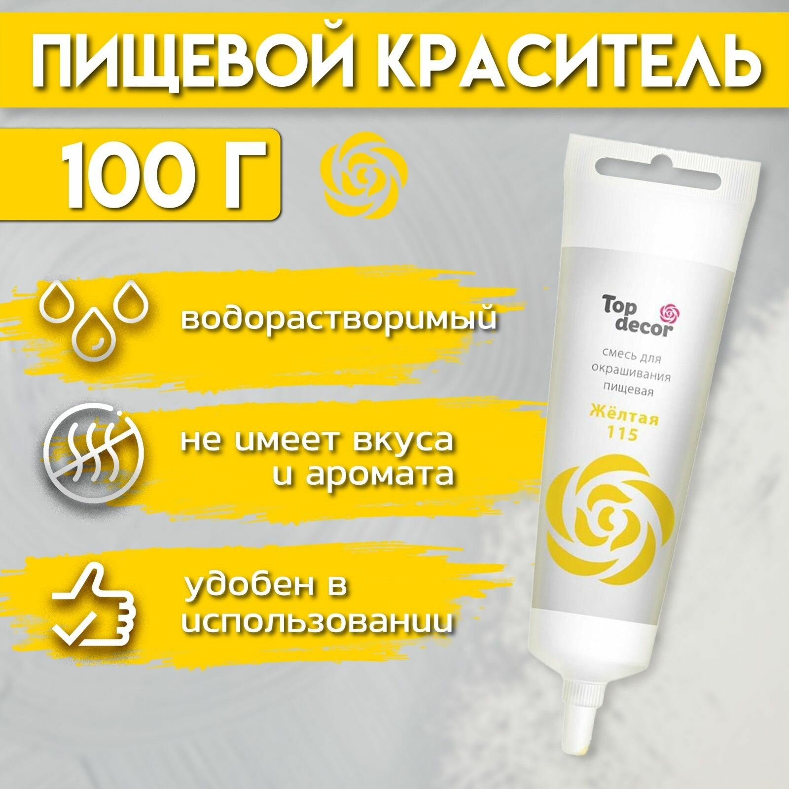 СохранитьПищевой краситель Top Decor гелевый, жёлтый 115, 100 г интересное: