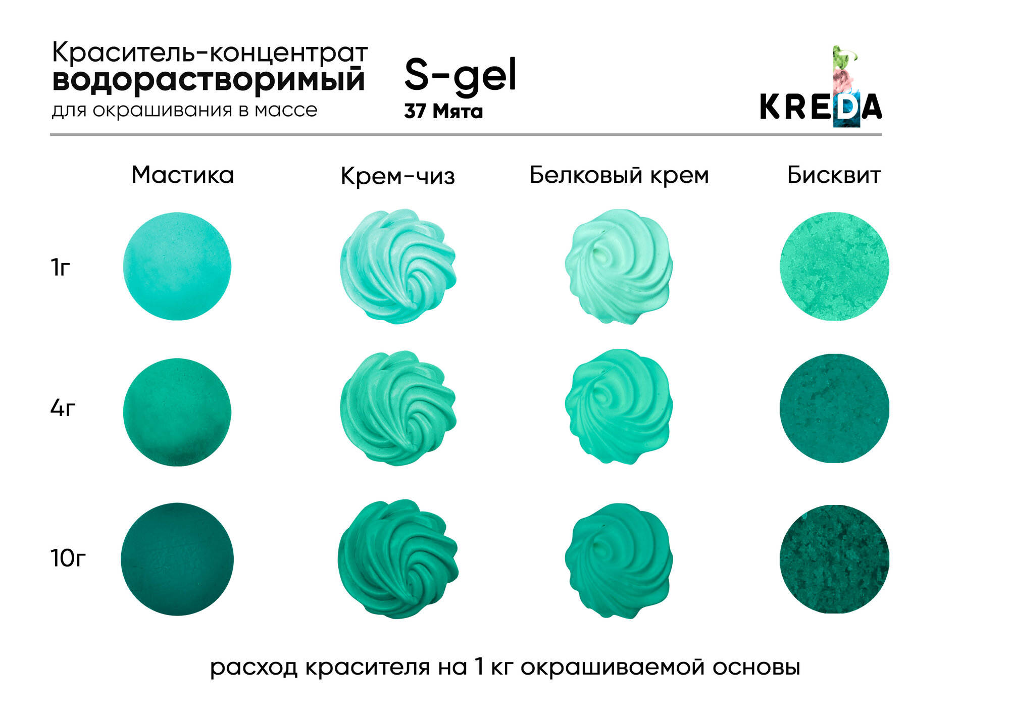 Купить Пищевой краситель Kreda S-gel, мята, 10 мл, гелевый, водорастворимый