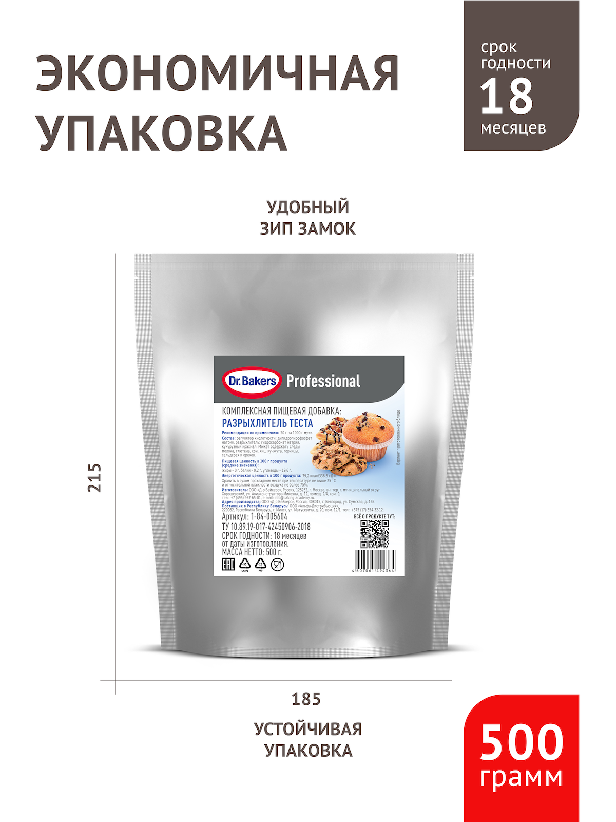 Dr.Bakers Professional Разрыхлитель теста, 500 г