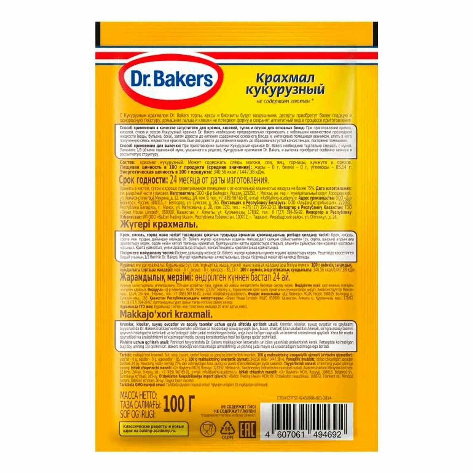 Dr.Bakers Крахмал кукурузный, 100 г, 6 уп интересное: