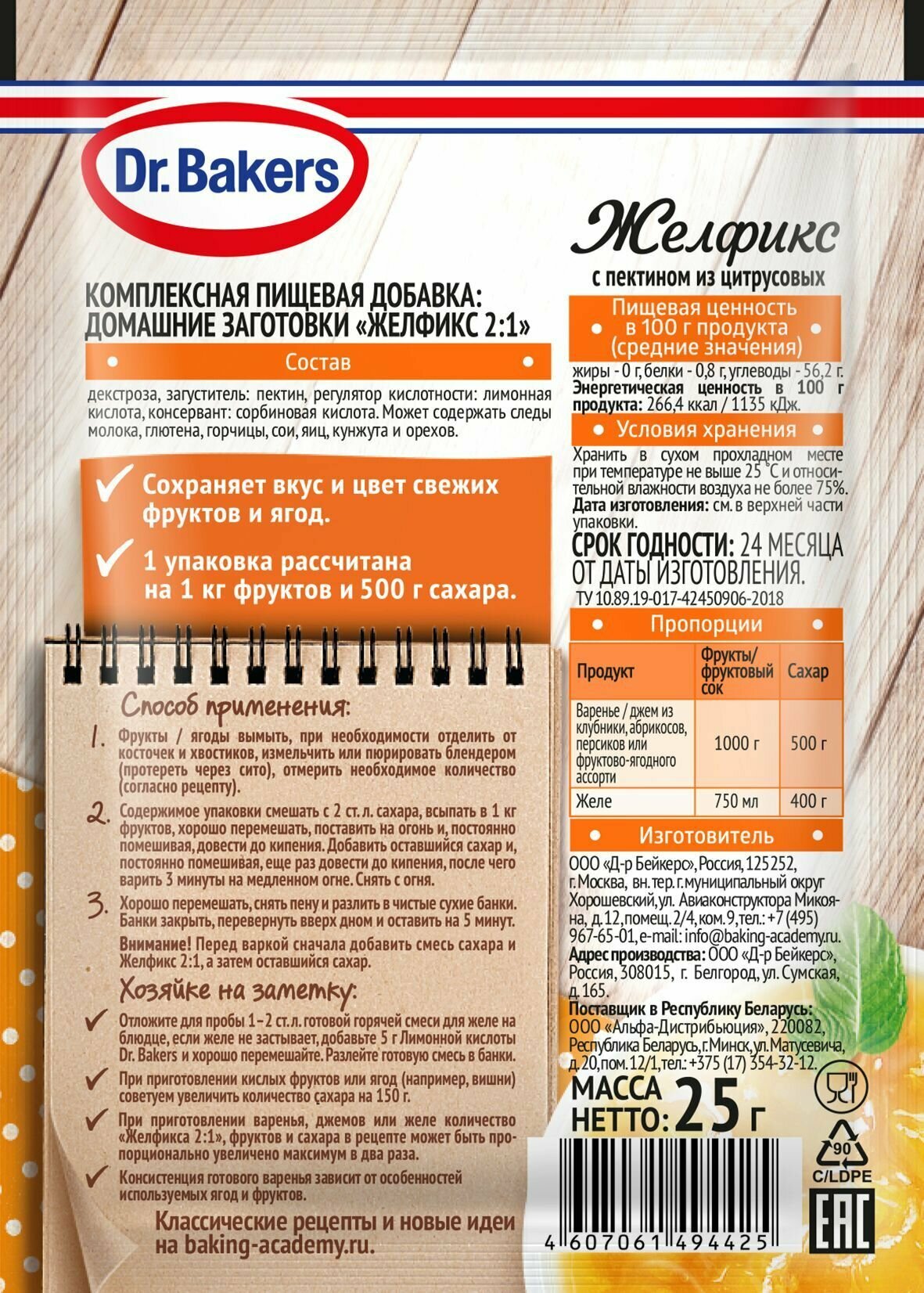 Желфикс 2:1 Dr.Bakers 4 шт. по 25г интересное:
