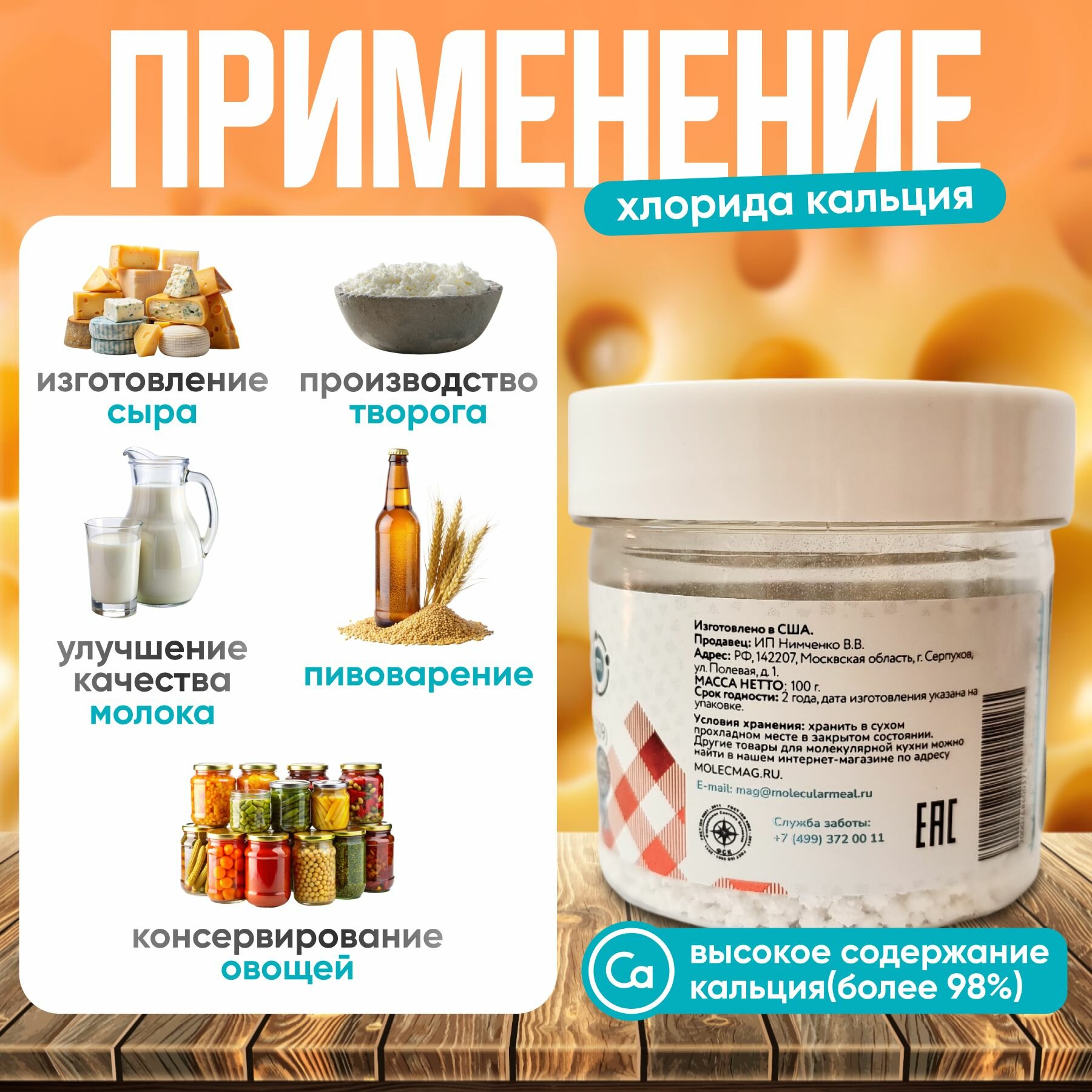 Ниже Вы можете прочитать отзывы на Хлористый кальций для сыра 100 г., закваска для сыра и творога, хлорид кация, сычужный фермент, пищевая добавка Е509, ознакомится с подробными характеристиками, посмотреть интересные обзоры и фотографии на Хлористый кальций для сыра 100 г., закваска для сыра и творога, хлорид кация, сычужный фермент, пищевая добавка Е509.