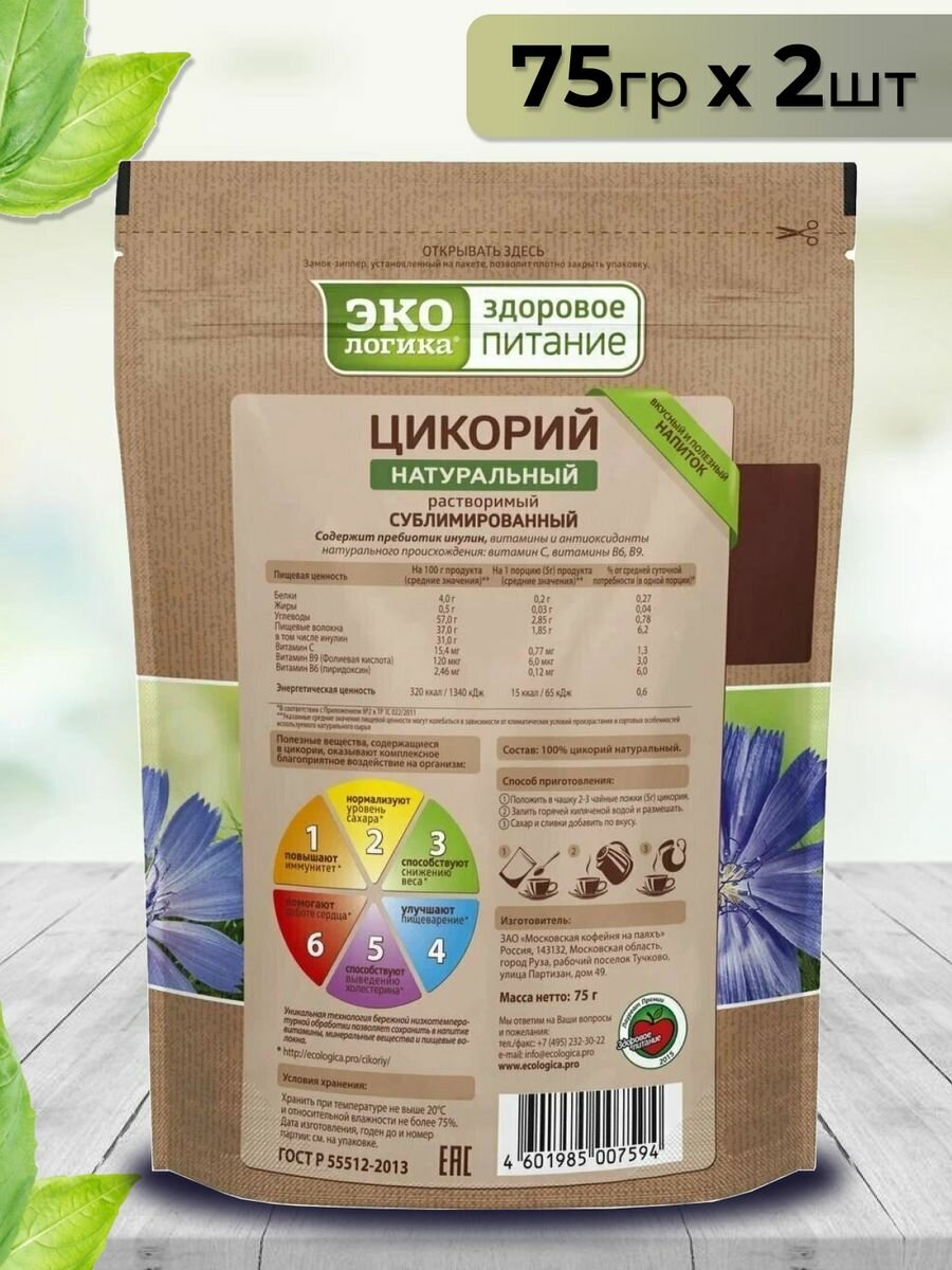 Цикорий экологика 2шт*150 гр натуральный растворимый сублимированный здоровое правильное питание/Россия