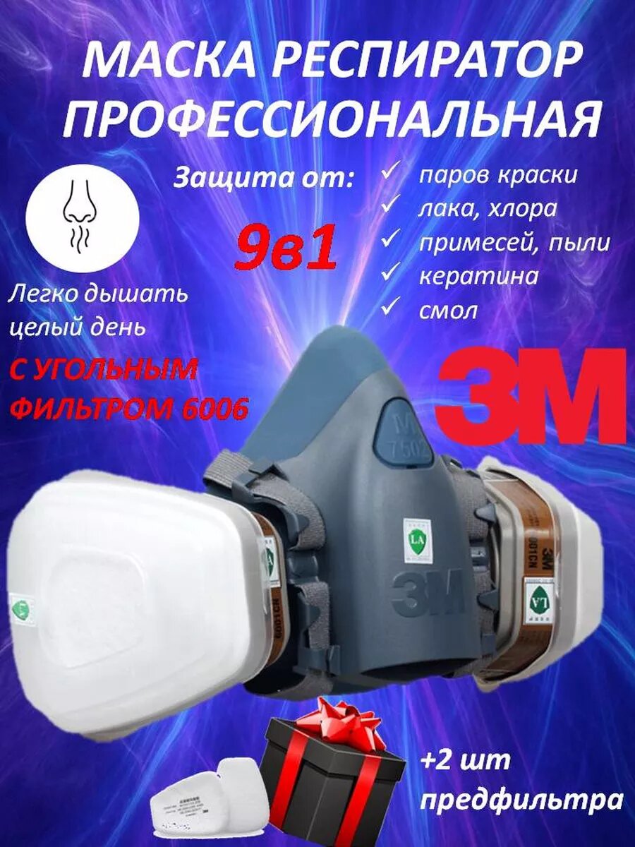 Респиратор 3М 7502 маска защитная от пыли краски химии интересное: