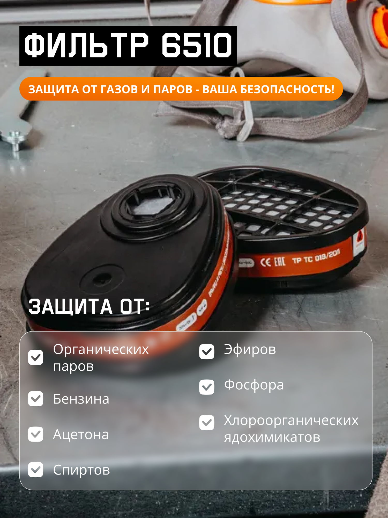 Респиратор от химии с угольными фильтрами J-SET6500/ респиратор для покраски