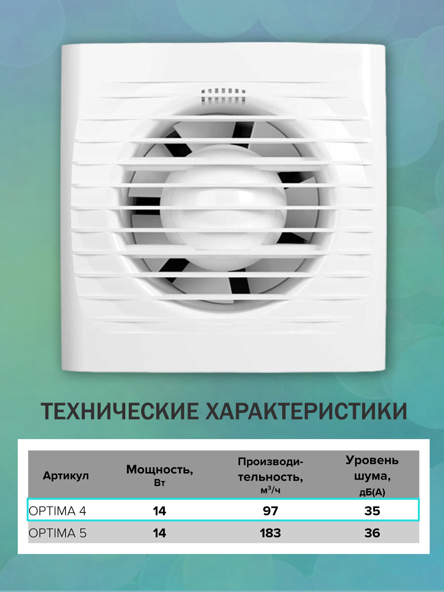 Вентилятор вытяжной AURAMAX OPTIMA 4 AT, 100 мм, с таймером, вытяжка в ванную интересное: