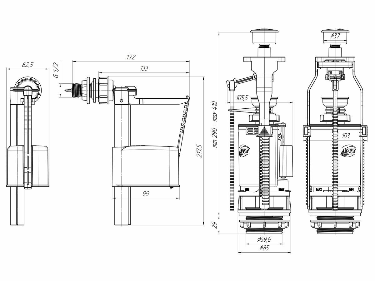 Арматура для сливного бачка АНИ WC3050M боковой подвод
