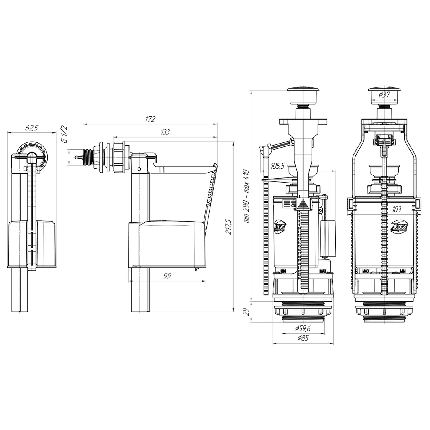 - Арматура для сливных бачков унитазов
