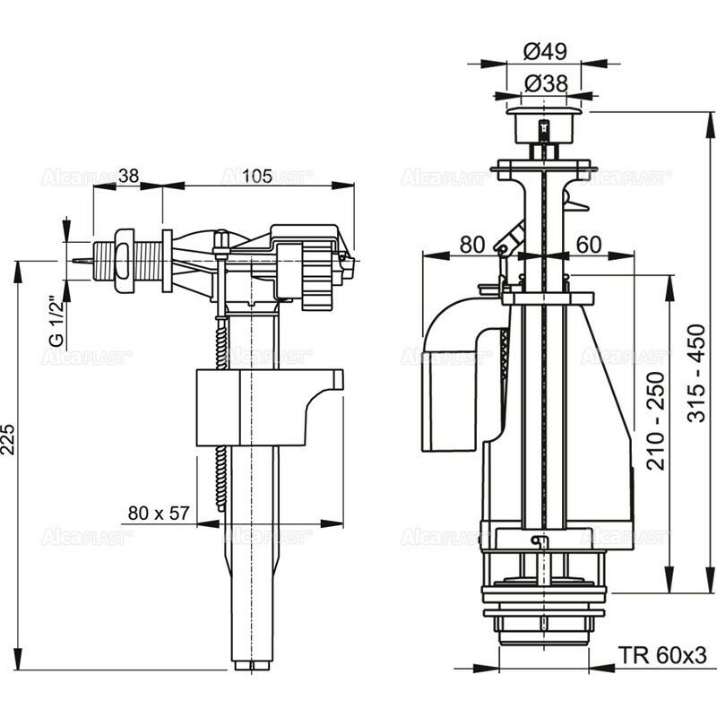 Арматура для бачка сливная/наливная 1/2" боковое подключение кнопка хром 2/реж Alca Plast SA08AK 1/2" CHROM интересное: