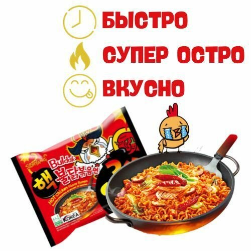 СохранитьЛапша Самьянг x3 Spicy, Самая острая Корейская очень Огненная лапша, 1 пачка 140г интересное: