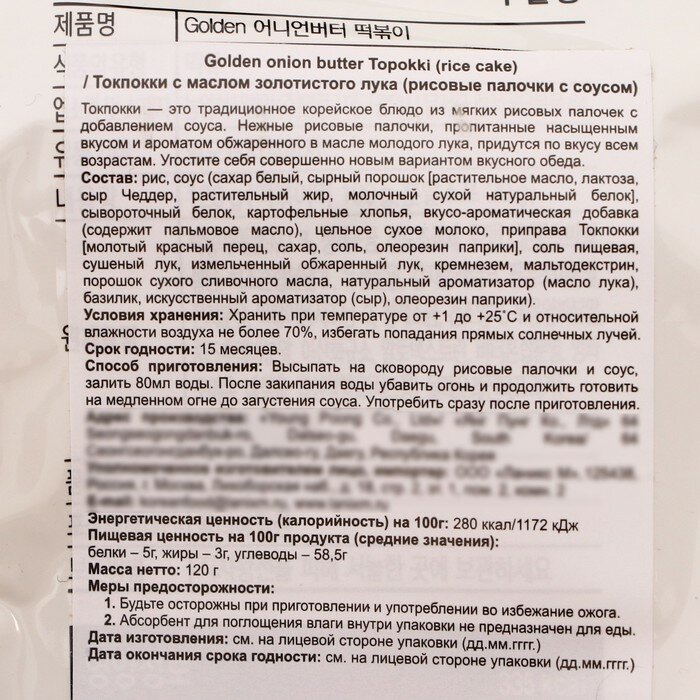 Ниже Вы можете прочитать отзывы на Токпокки Topokki с маслом золотистого лука (рисовые палочки с соусом), пауч 120гр, ознакомится с подробными характеристиками, посмотреть интересные обзоры и фотографии на Токпокки Topokki с маслом золотистого лука (рисовые палочки с соусом), пауч 120гр.