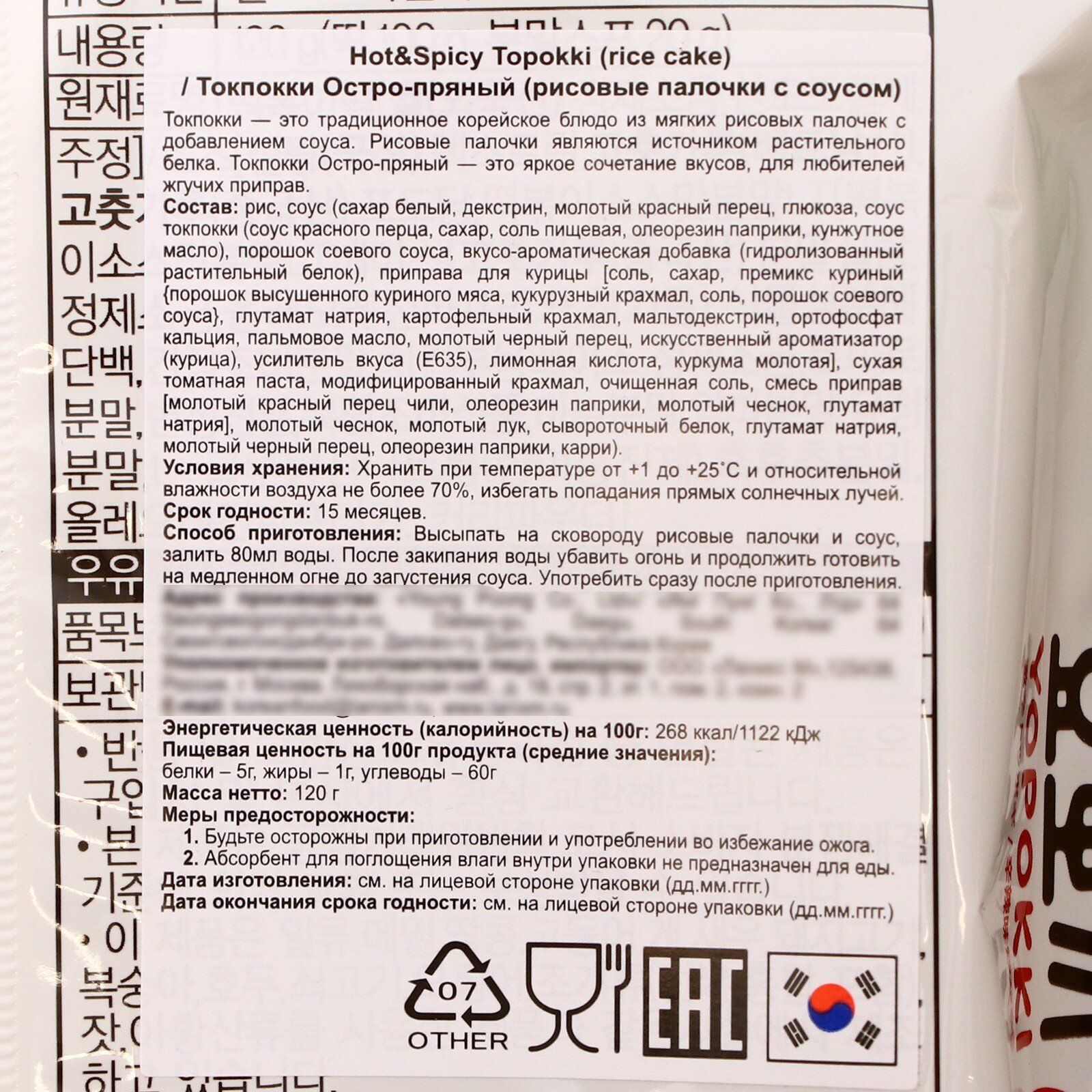 Купить Рисовые палочки Topokki с остро-пряным соусом, 120 г