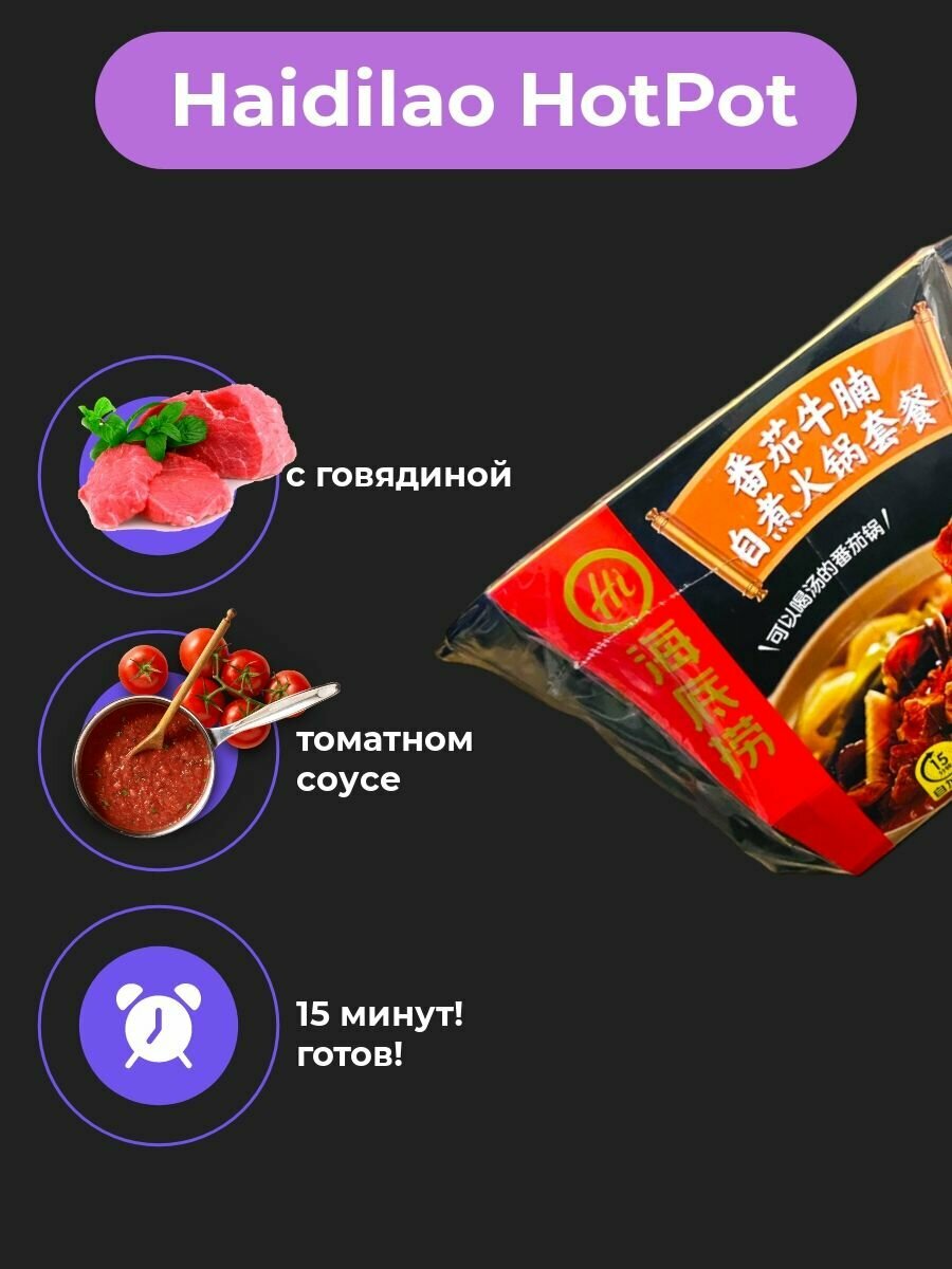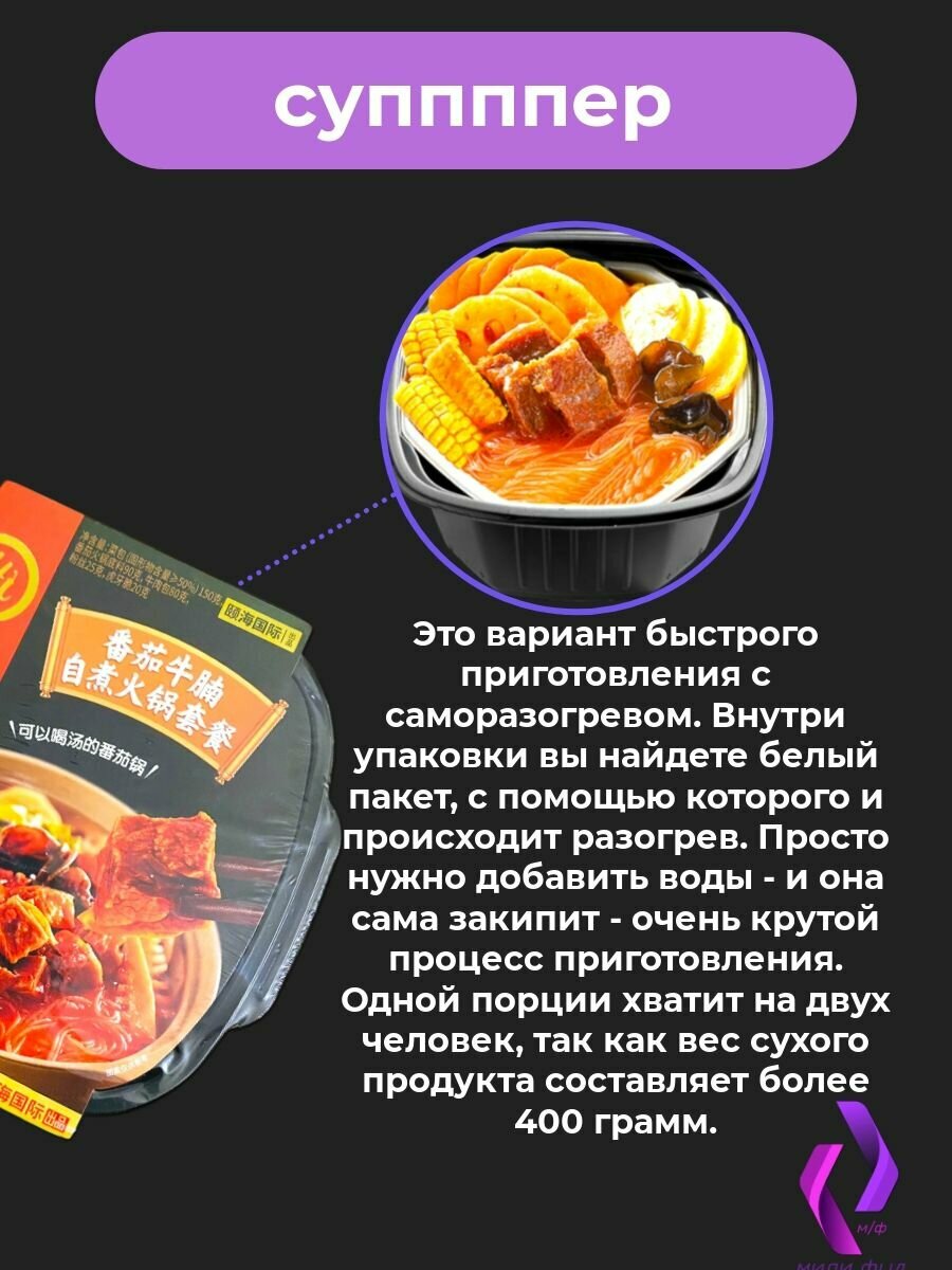 Китайская Саморазогревающаяся лапша Haidilao HotPot с говядиной и острым томатным соусом 435 гр интересное: