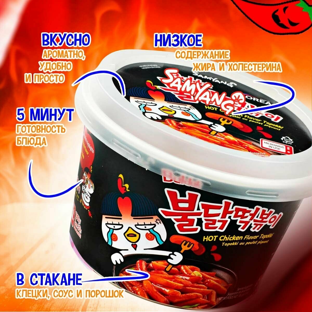 Рисовые клецки топокки острые со вкусом курицы в соусе Бульдак, 185 гр.,SAMYANG интересное: