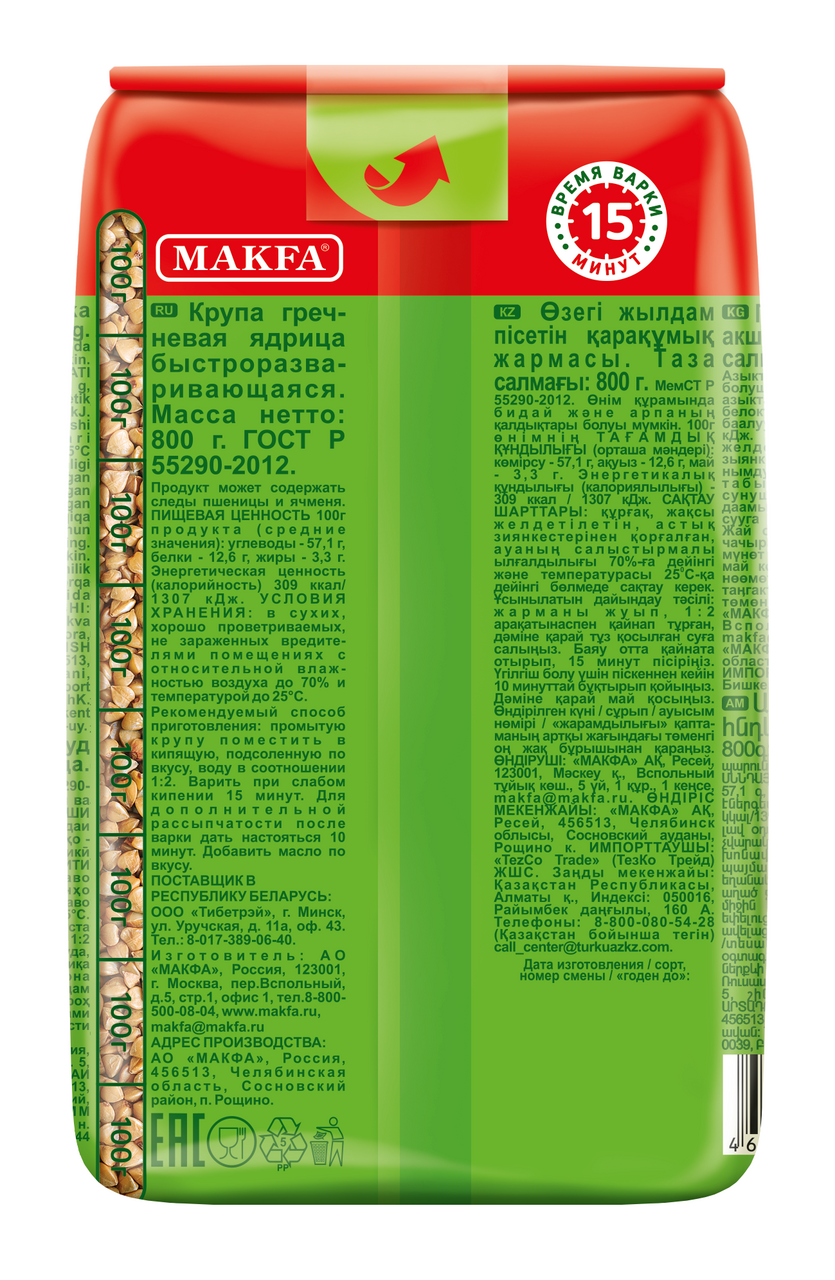 Крупа гречневая Makfa быстроразваривающаяся 800 г интересное: