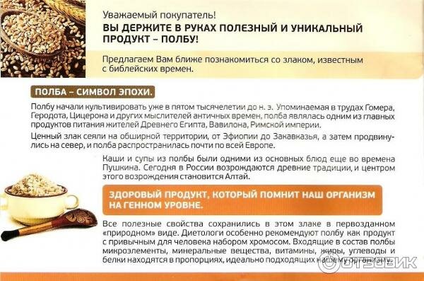 | Состав | Семена полбы - 100%. |